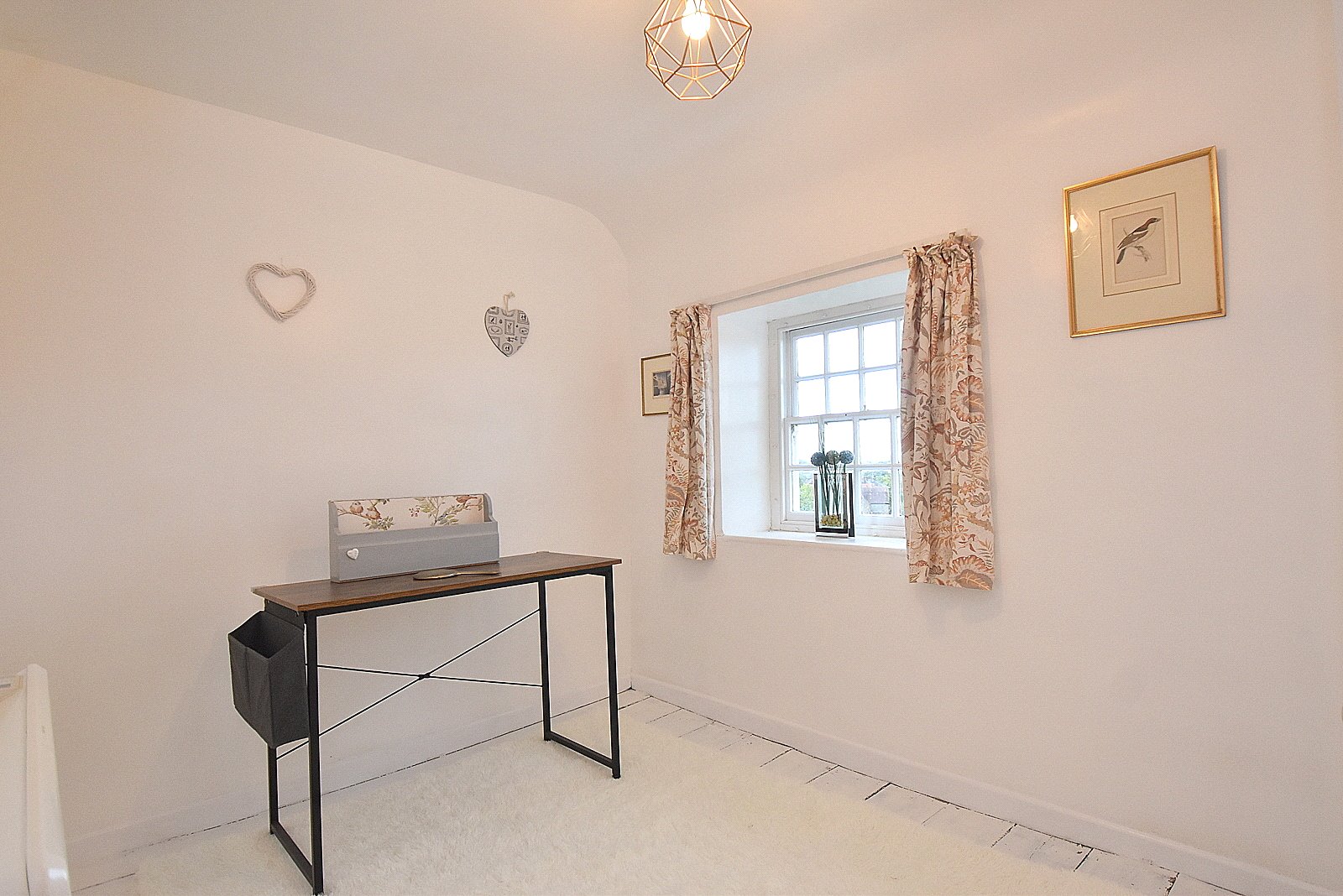 Inside, the accommodation is generous and well-proportioned. The cottage boasts three inviting bedrooms, two of which enjoy glorious far-reaching views. The kitchen is thoughtfully designed with a good range of units and ample space for a dining table, creating a sociable space for everyday life. Recent upgrades by the current owners include a stylishly refurbished bathroom, and the installation of modern Dimplex Quantum storage heaters, ensuring comfort and efficiency.