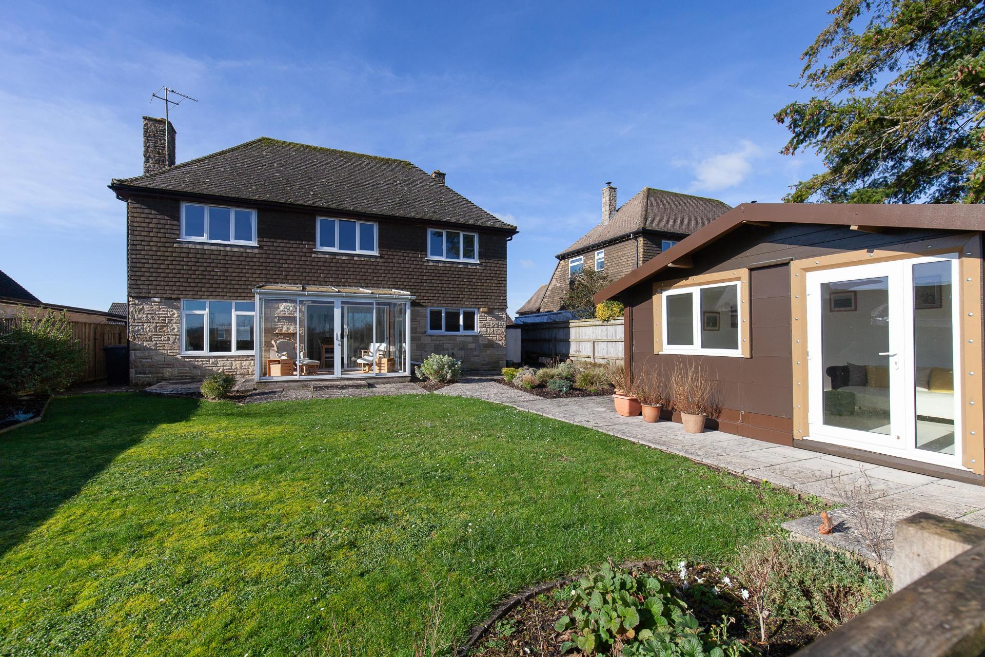The rear garden is mostly laid to lawn, with flower beds and enclosed by fencing and side access to the front of the property. The rear garden also has the cabin/summerhouse, which provides a fantastic extra space for a quiet retreat or a work-from-home space.