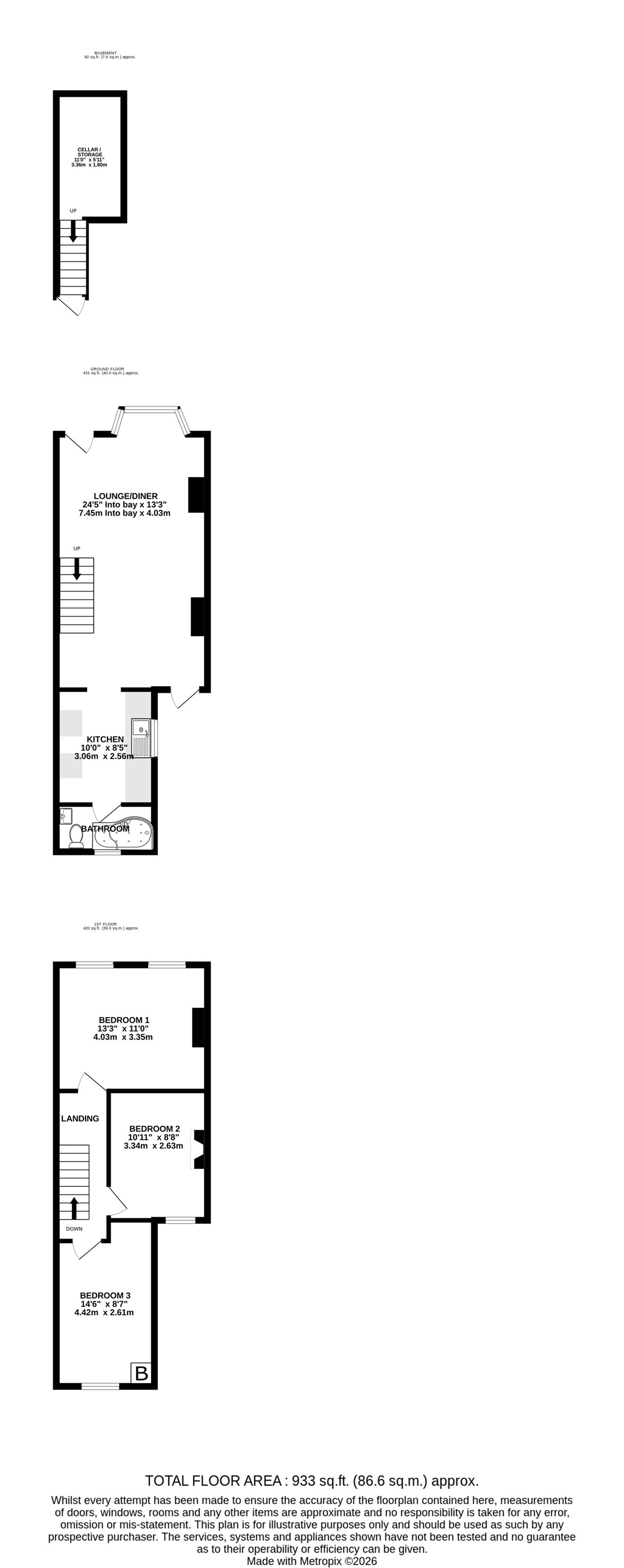 Situated in the heart of Gillingham, this well-presented three-bedroom mid-terrace home offers excellent access to local amenities and strong transport links, making it an ideal purchase for first-time buyers, families, or investors alike. Internally, the property boasts a spacious open-plan living and dining area, providing plenty of room for relaxing and entertaining, with direct access to the rear garden. The home also features a modern fitted galley-style kitchen and a stylish family bathroom complete with a shower over the bath. In addition, the property benefits from a useful cellar, providing valuable additional storage space. Upstairs, there are three well-proportioned double bedrooms, with the principal bedroom benefitting from fitted wardrobes. Externally, the property enjoys a generous tiered rear garden measuring approximately 50ft in length. The current owners have made excellent use of the space, which is arranged over three levels. Two tiers are paved, creating fantastic seating and entertaining areas, while the lower tier is laid to lawn and would be perfect for those with green fingers. The property also retains a number of attractive period features throughout, adding character and charm to the home. To the front of the property there is on-street permit parking available. Early viewing is highly recommended. Contact the Greyfox Rainham sales team today to arrange your viewing before it’s gone.Basement