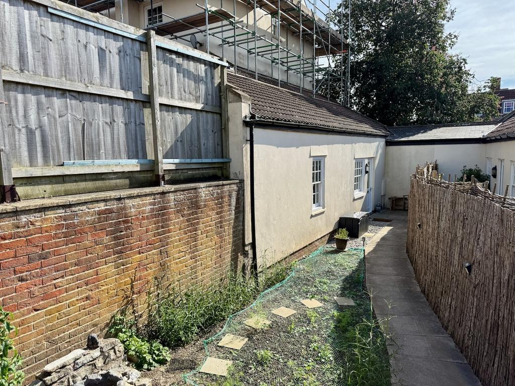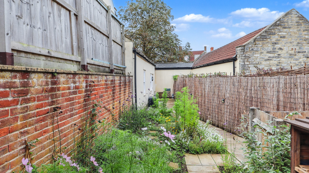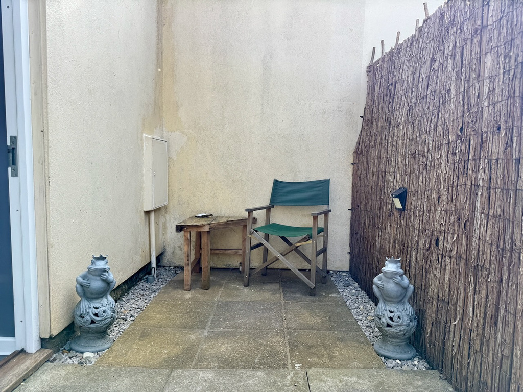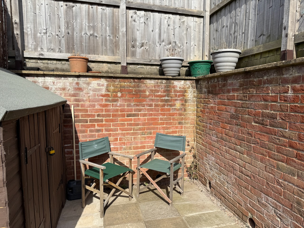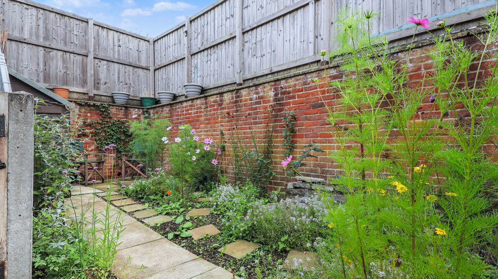 - Private garden accessed via steps from the rear car park, including patio, planting space, and additional seating area by the front door