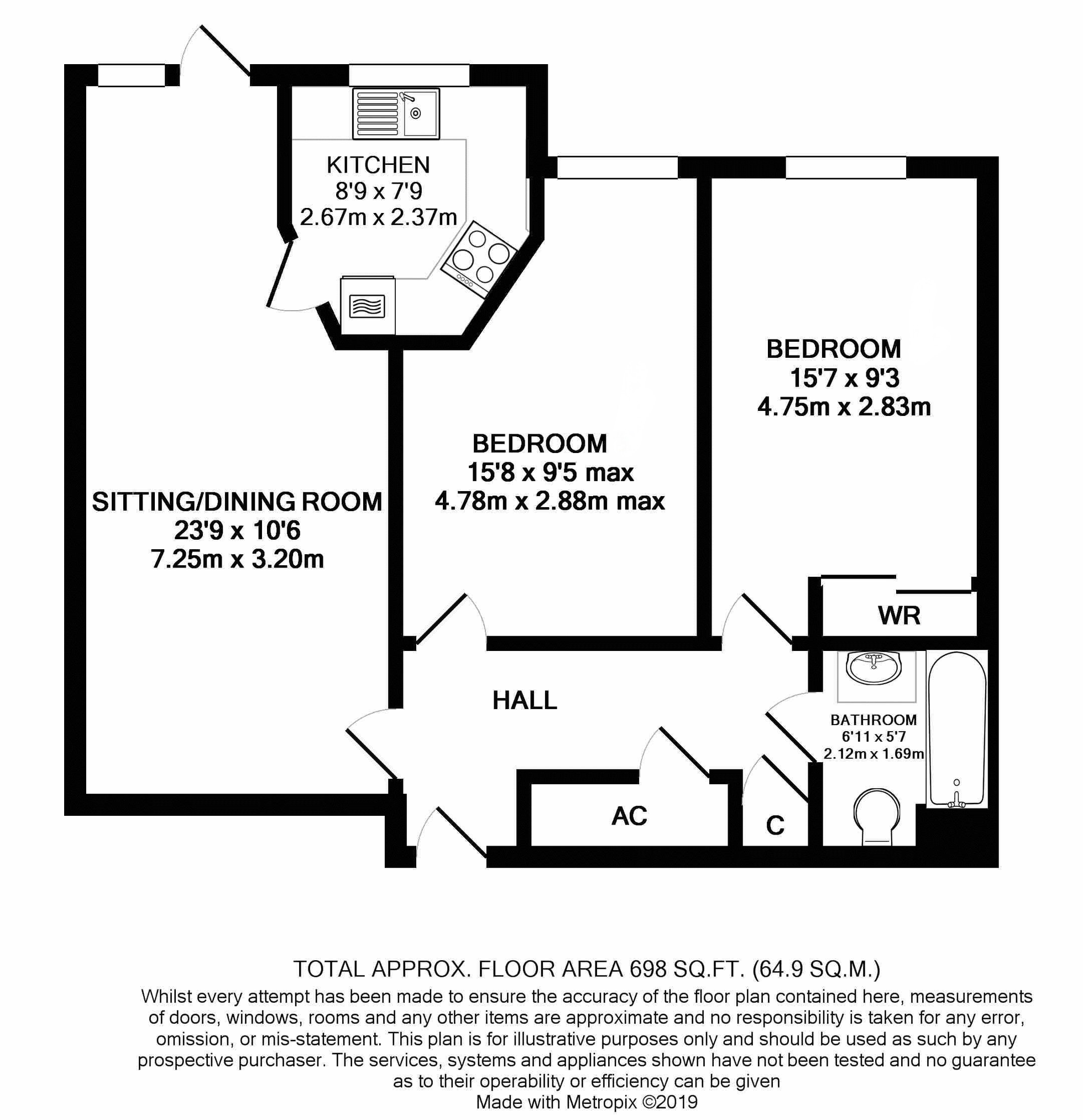 - Both bedrooms are a good size, with the larger of the two offering a built-in wardrobe with double doors