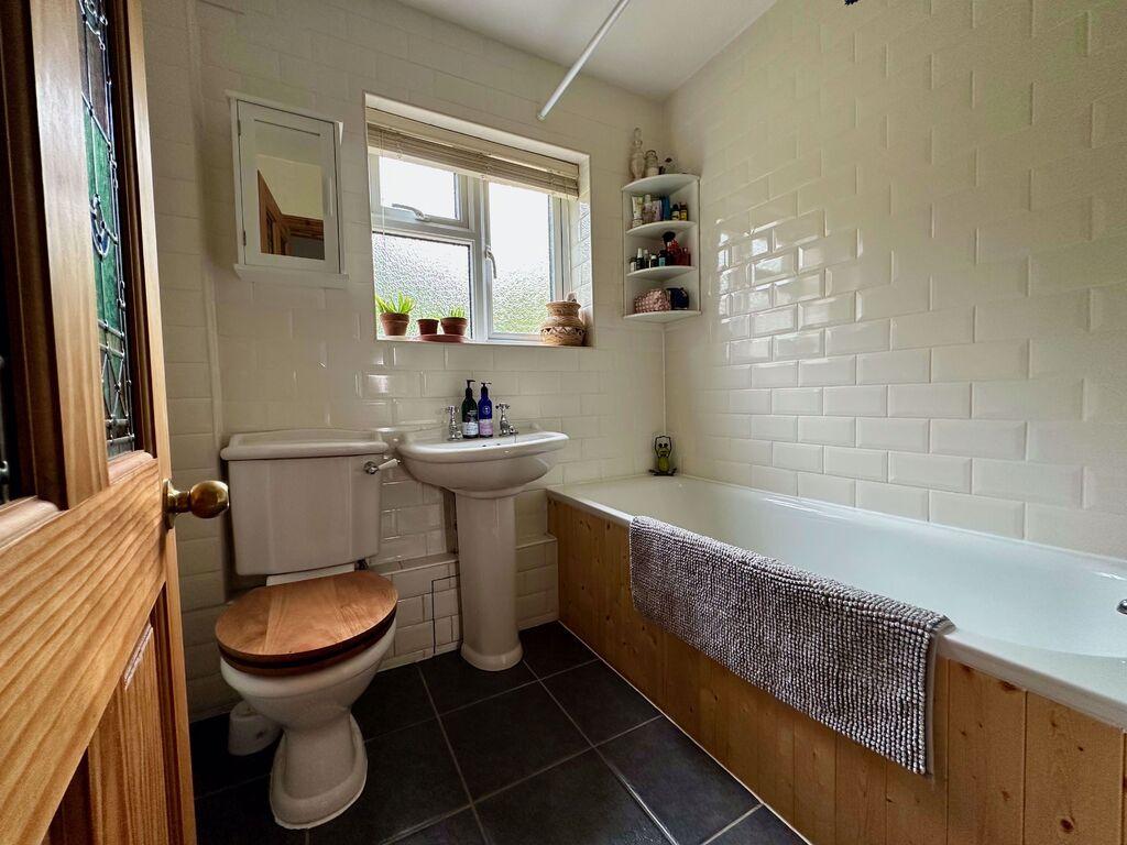 - The bathroom is well appointed with a panelled bath having a shower over and tiling to all four walls