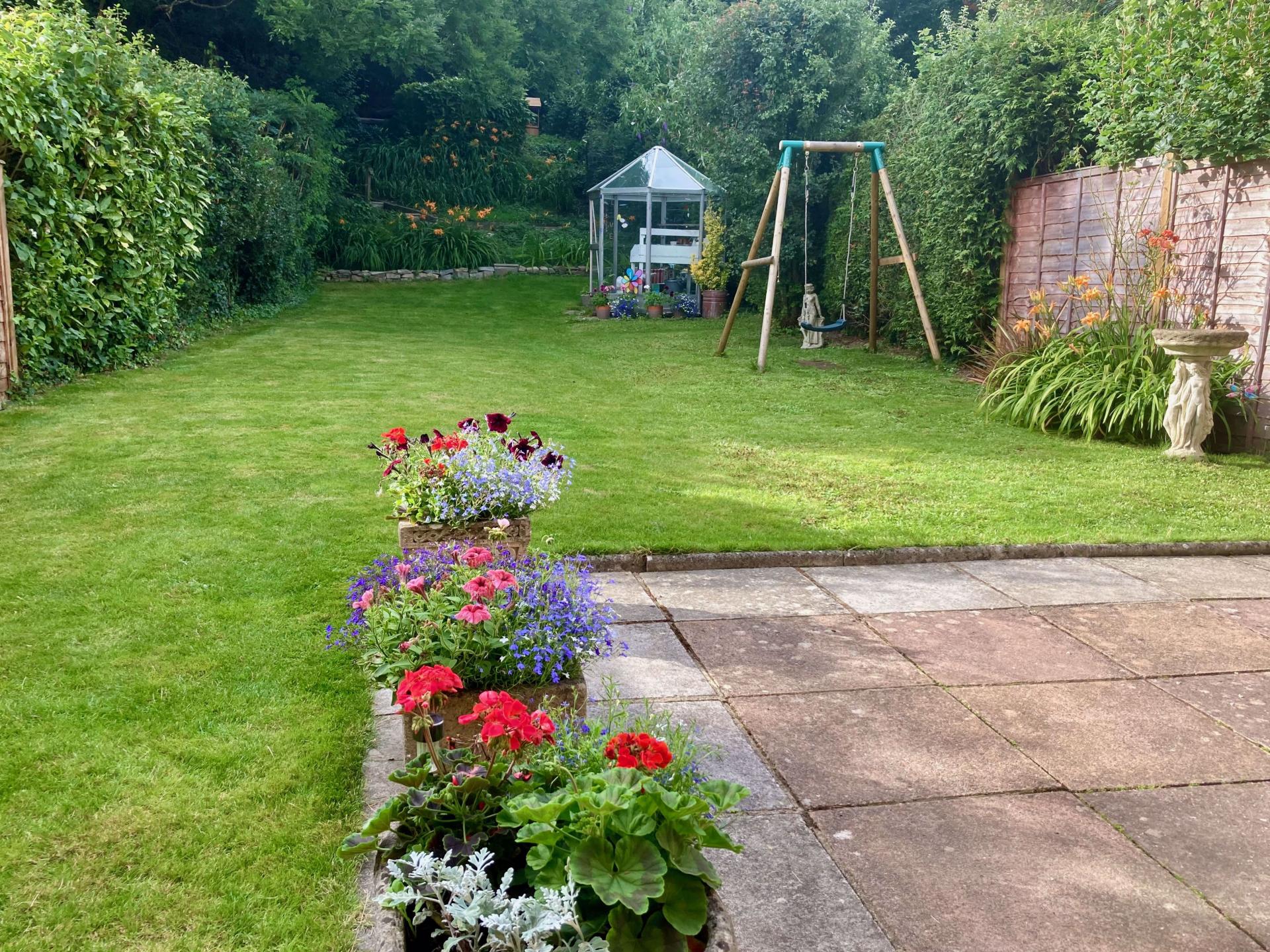 - The rear garden is a picture, with a patio extending from the kitchen onto an expanse of lawn