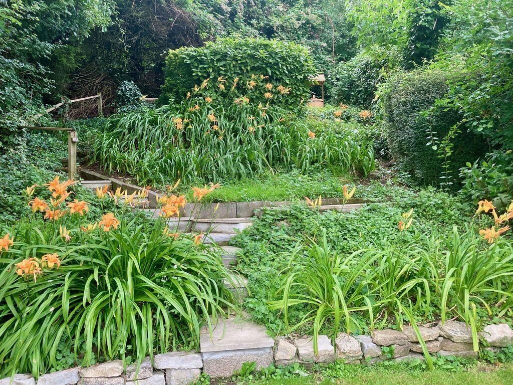 - This leads to a thoughtfully planted elevated garden at the foot, with a path, winding its way upwards to the top
