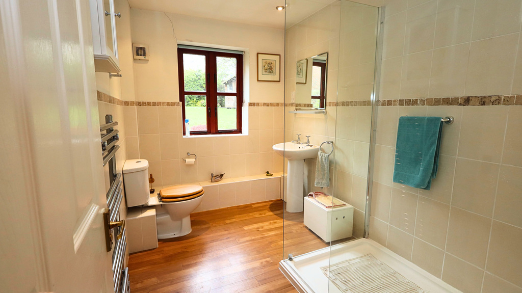 - Family bathroom with modern suite including a large walk-in shower enclosure