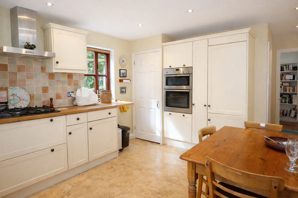 - Kitchen/breakfast room fitted with a range of units and integrated appliances, with dual aspect windows providing good natural light