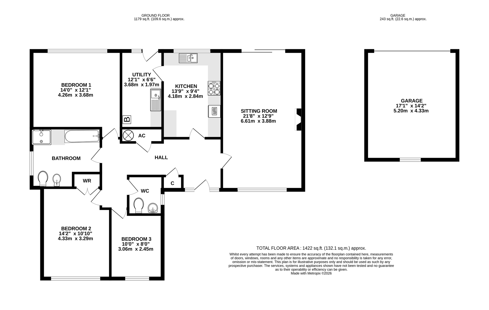 - Three bedrooms, including two good doubles and a versatile third bedroom or study