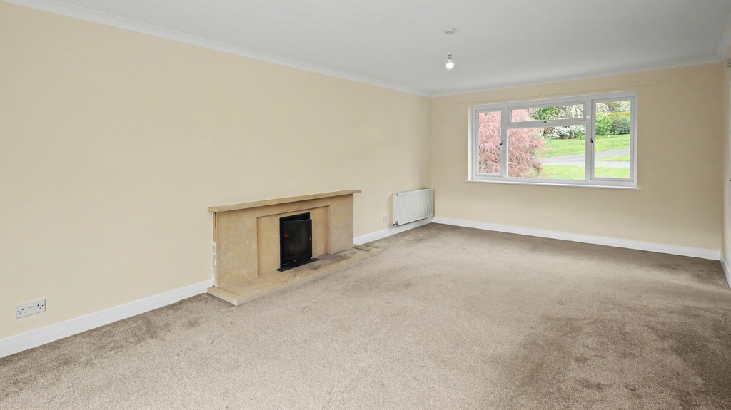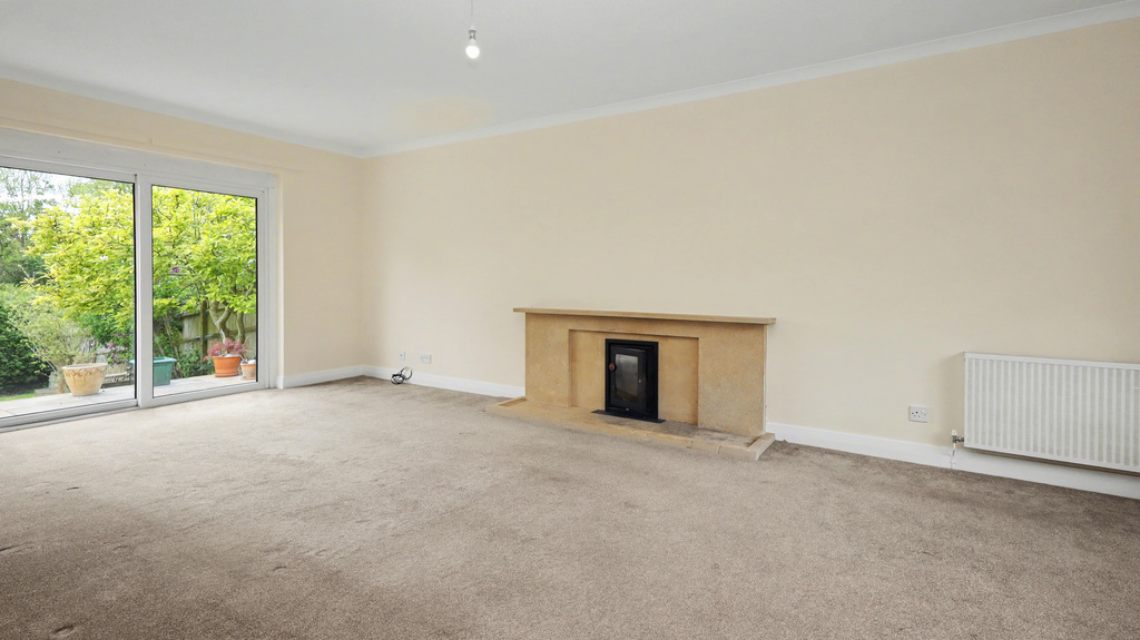 - Spacious sitting room with feature open stone fireplace and patio doors to the rear garden