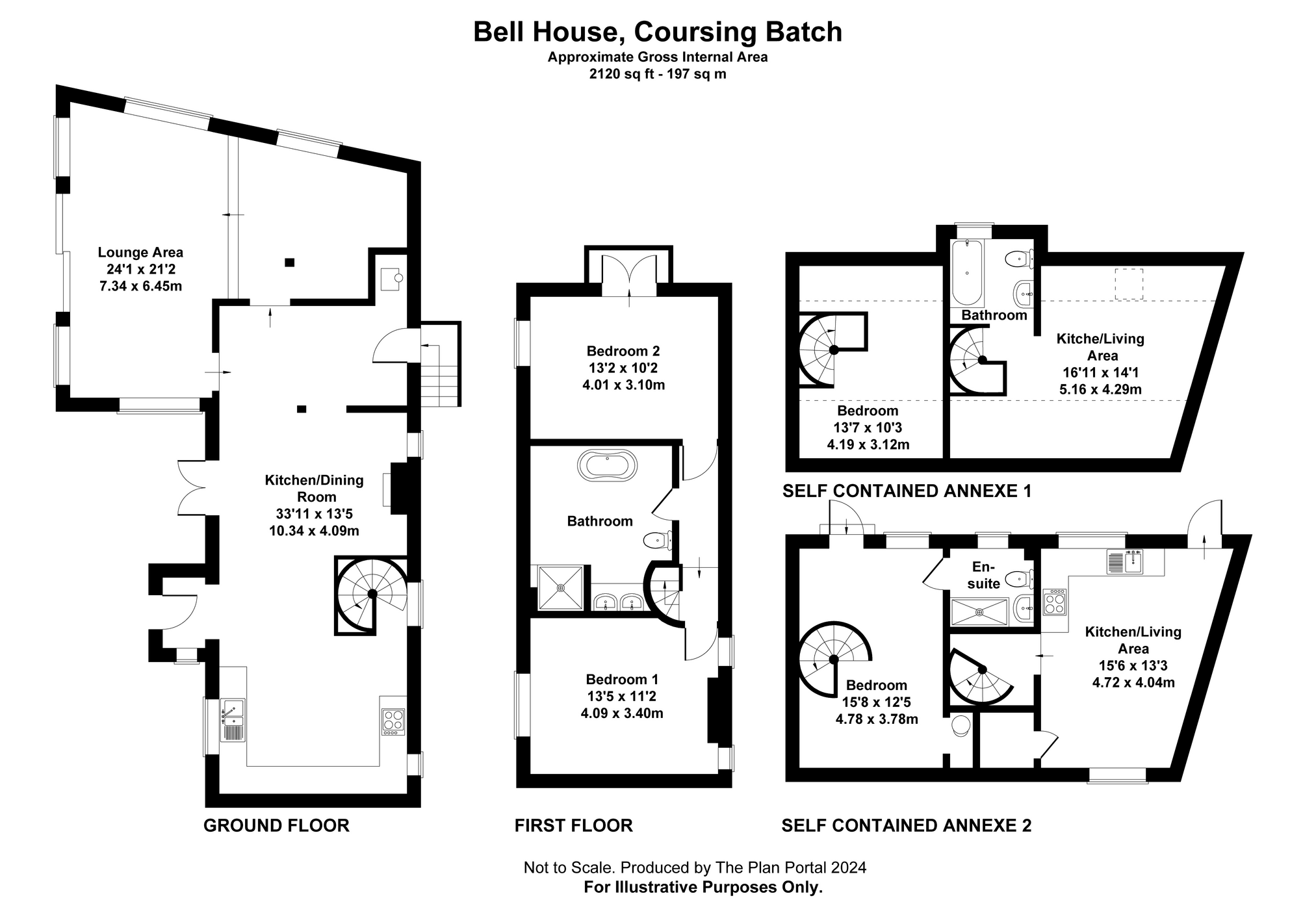 - **Detached Holiday Let:** Features two independent units with separate access, offering two bedrooms and kitchen-equipped sitting areas, ideal for guests.