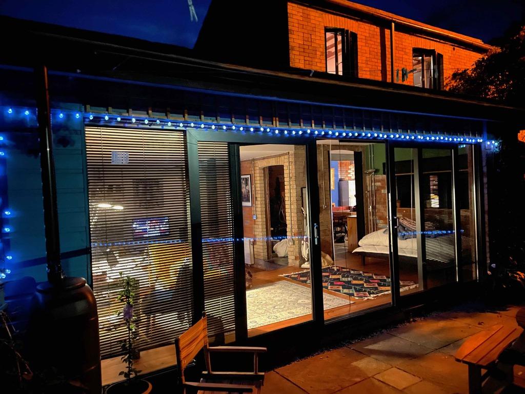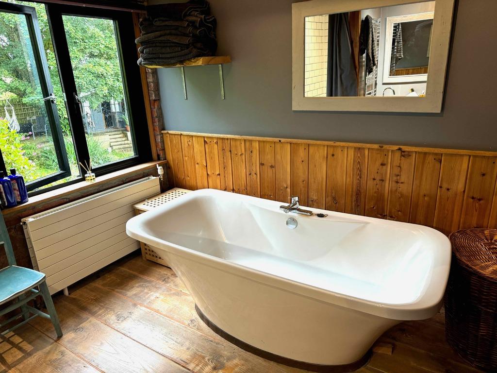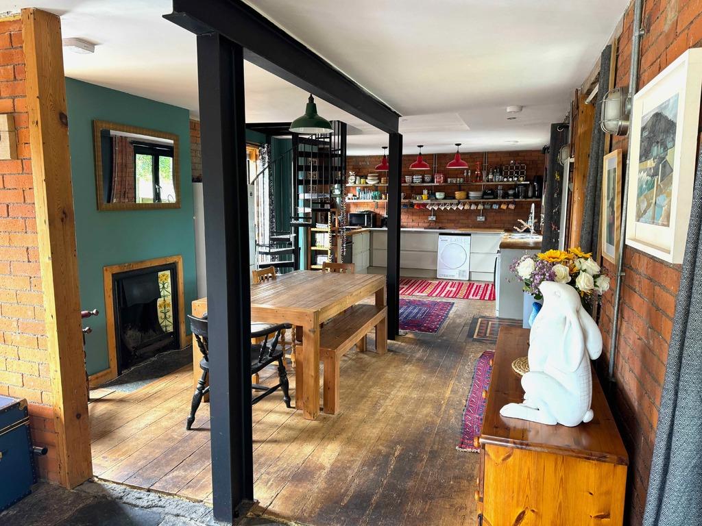- **Spacious Open-Plan Living:** The extended lounge features wide glass doors, a wood-burning stove, and direct access to a landscaped garden.