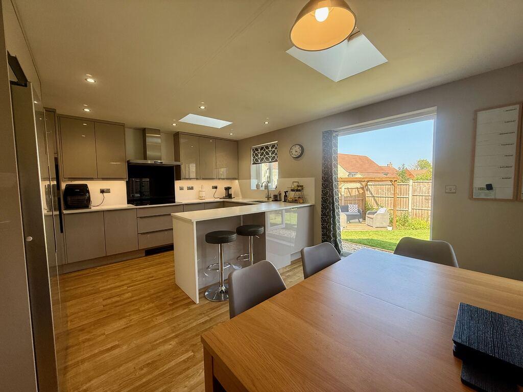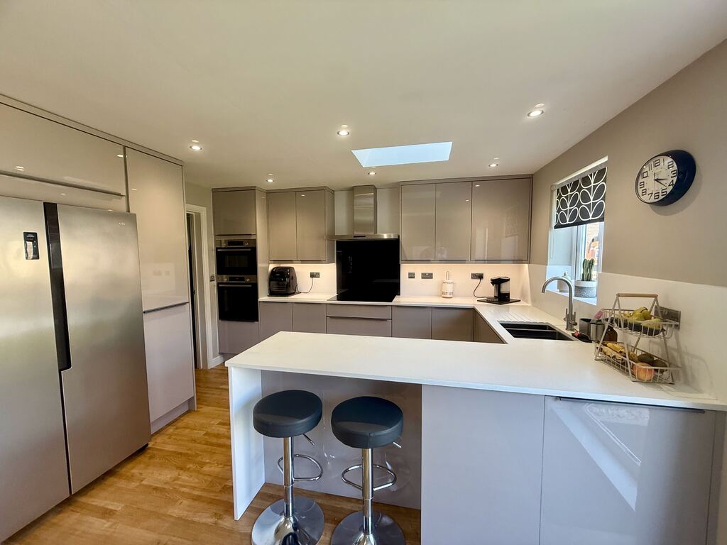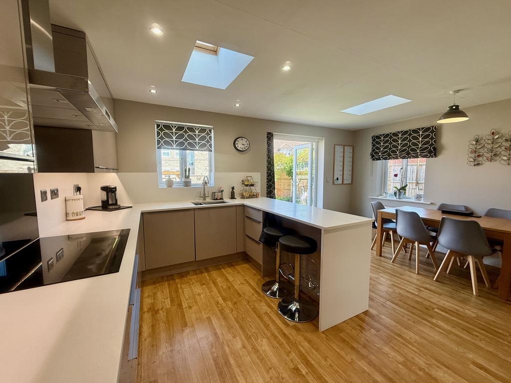 - Remodelled kitchen/dining room with integrated Bosch appliances, rooflights, and glazed double doors opening onto the rear garden