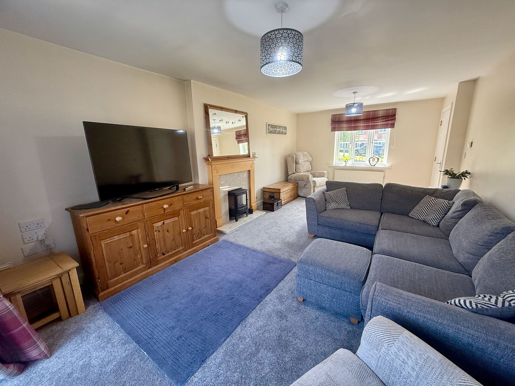 - Spacious sitting room with front and rear aspects, patio doors to the garden, and a feature fireplace with gas point