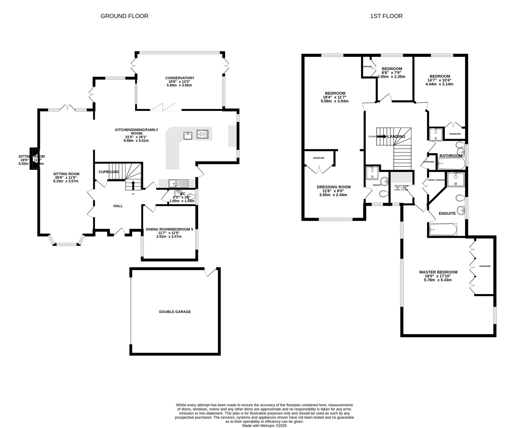 - Multiple reception rooms with double doors opening to the garden from the sitting room, family room and conservatory