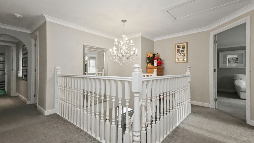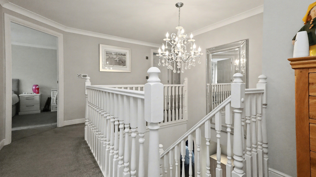 - Double garage with electric up-and-over door and ample off-street parking for multiple vehicles.