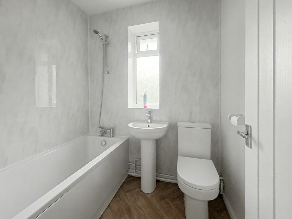 - Updated bathroom with new white suite including bath with shower mixer, wash basin and WC.