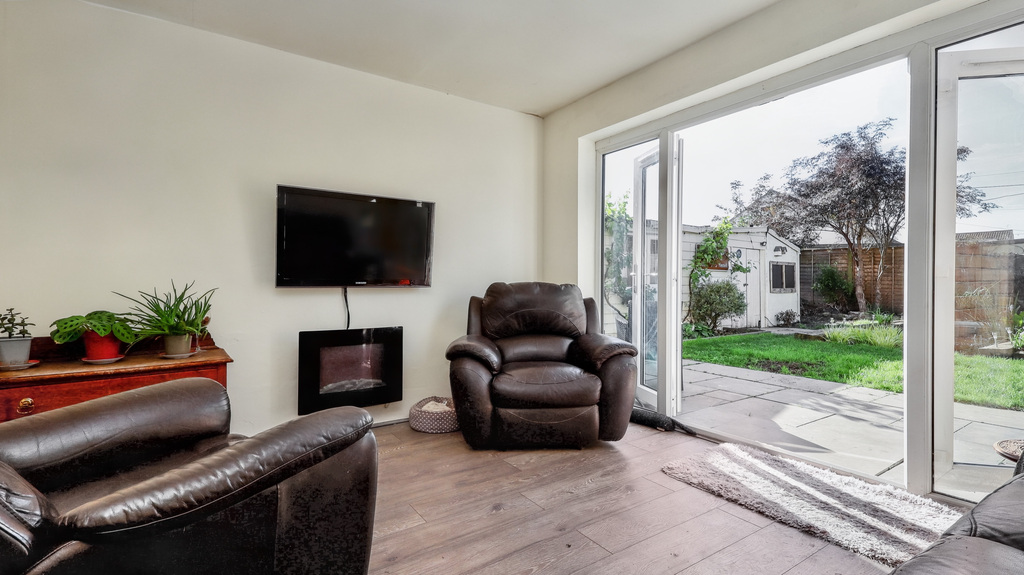 - Sitting room with electric fire and glazed patio doors flooding the room with plenty of natural light, overlooking the rear garden.