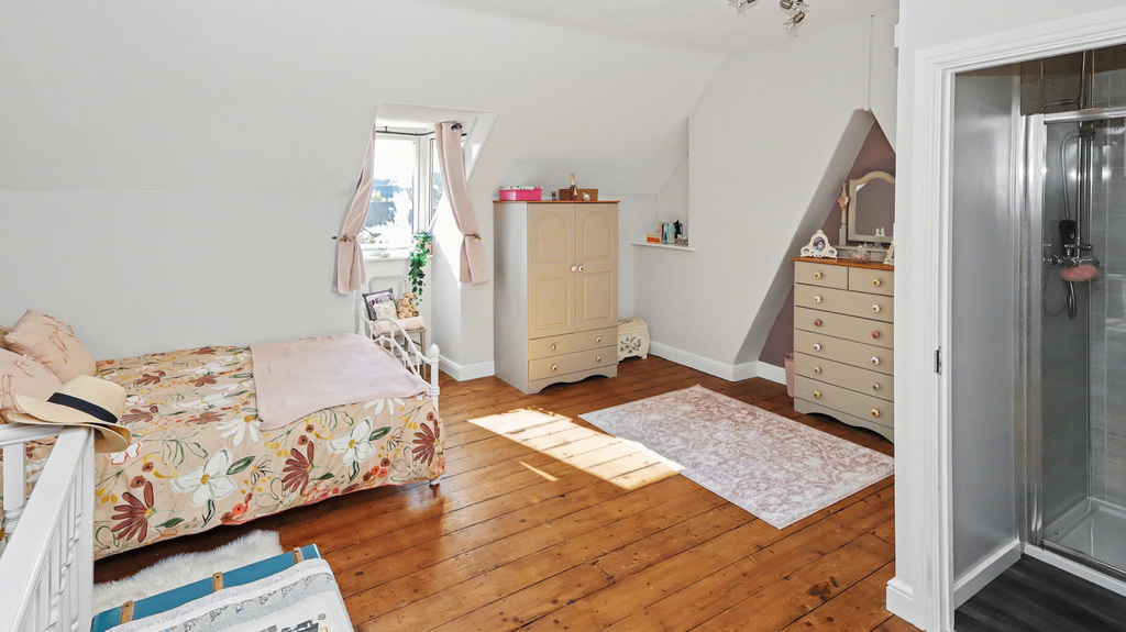 - Four bedrooms including a spacious attic room with en suite shower room and views towards Glastonbury Tor from the dormer window and well appointed family bathroom, including a roll top bath
