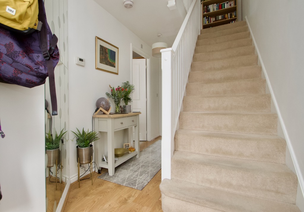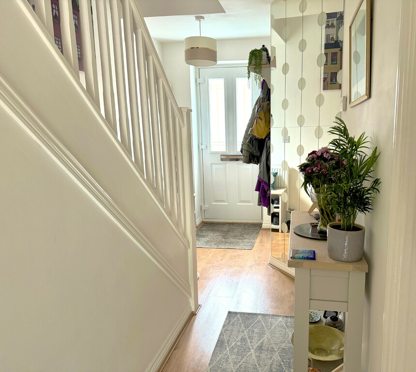 - A spacious entrance hall leads to stairs rise to the first floor, with door to the kitchen, sitting room/diner, and cloakroom.