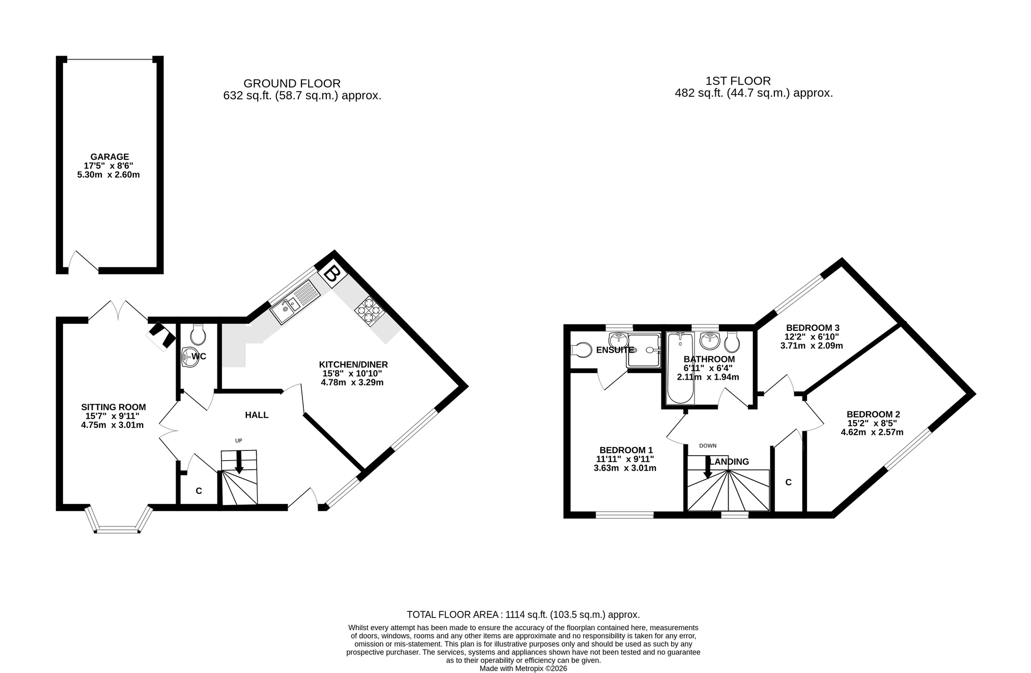 - On the first floor there are three good sized bedrooms, two of which are doubles. The master bedroom benefits from an ensuite shower room with shower, basin and toilet.