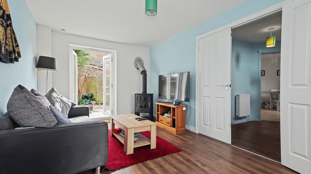 - Double doors lead into the well proportioned sitting room with bay window and lovely wood burning stoves. Patio doors lead out to the private and enclosed rear garden.