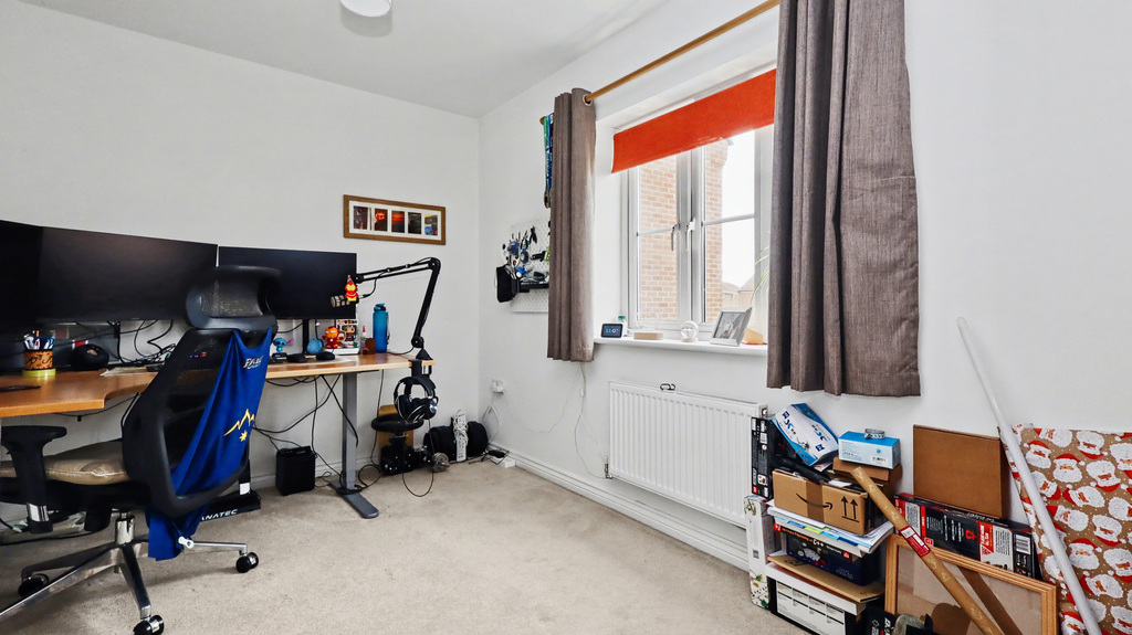 - Bedroom two is light and airy, while bedroom three, utilised as a home office, is a good size single, both of which are serviced by the family bathroom with basin, toilet, and bath with shower ove...