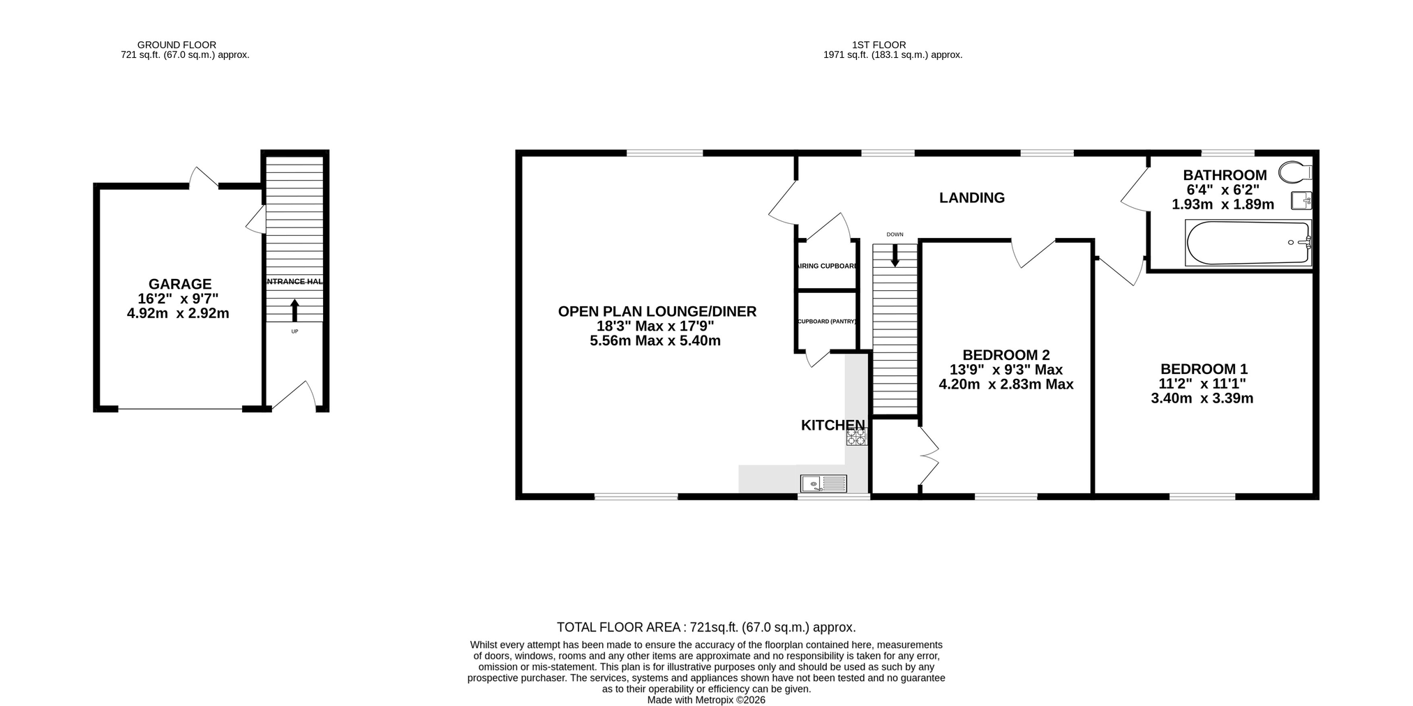 - Two well proportioned bedrooms, both of which are doubles, serviced by the family bathroom with basin, toilet and bath with shower over.