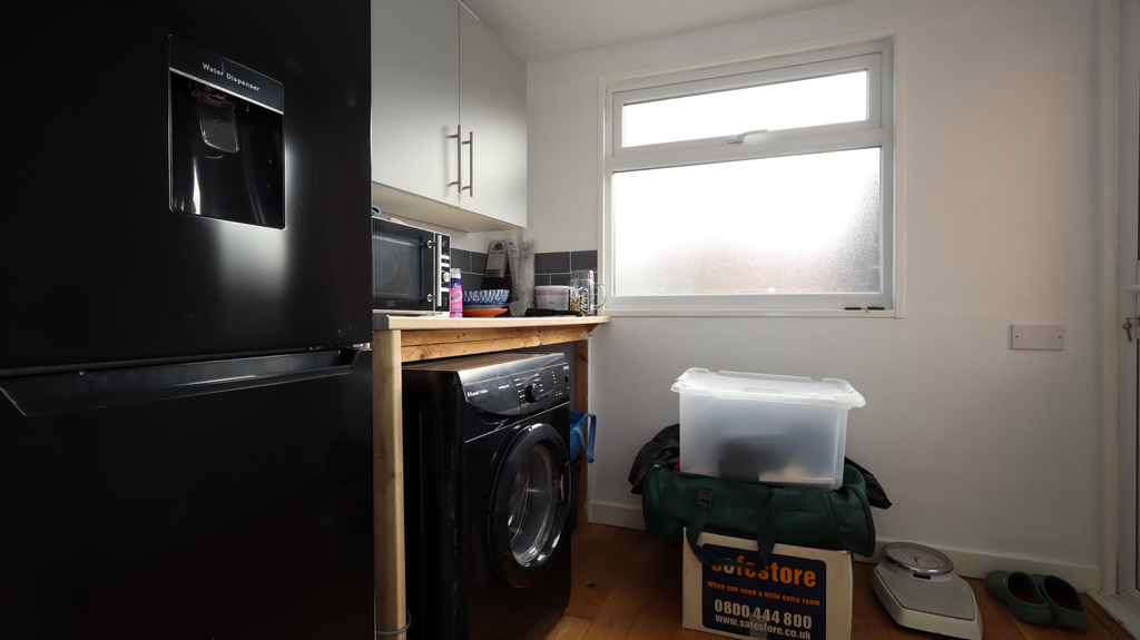 - The utility has plumbing for a washing machine, a door to the rear and the cloakroom