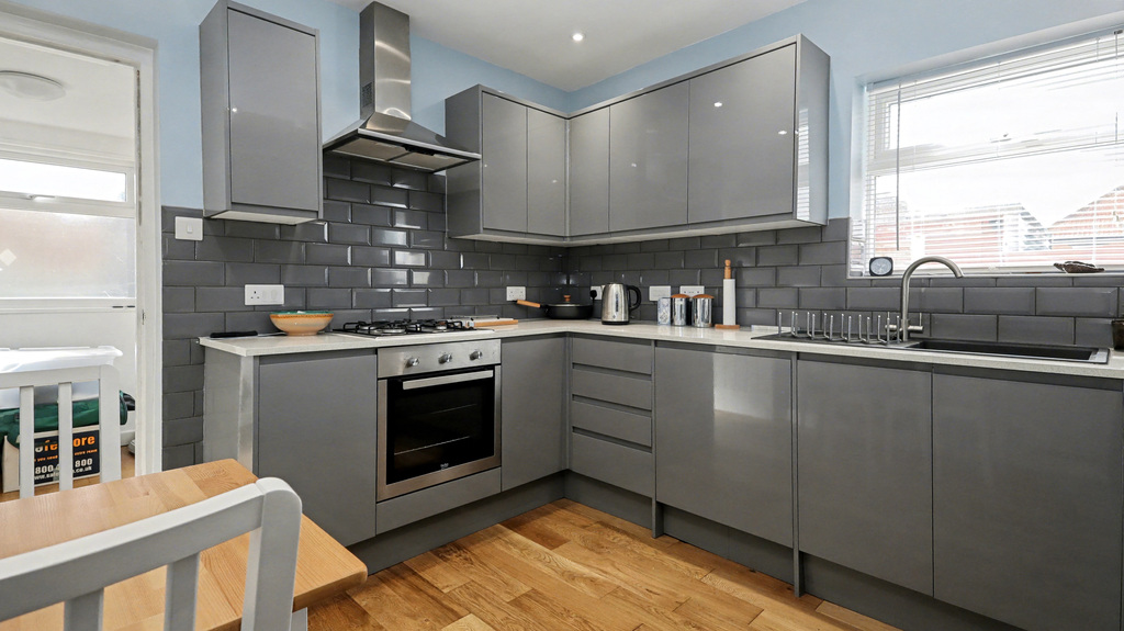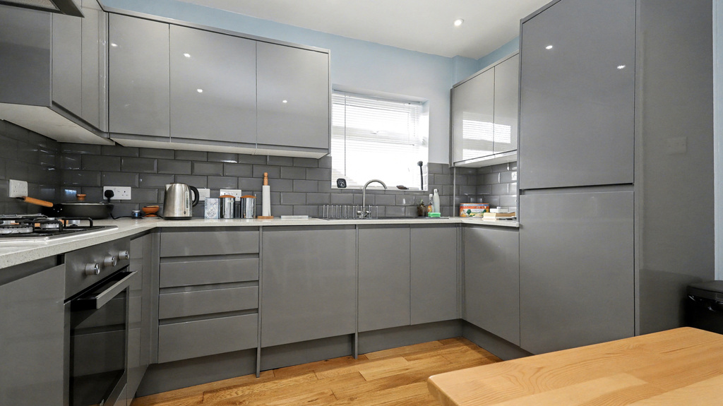 - The kitchen has a new range of units including an integrated electric cooker, gas hob, dishwasher and fridge/freezer