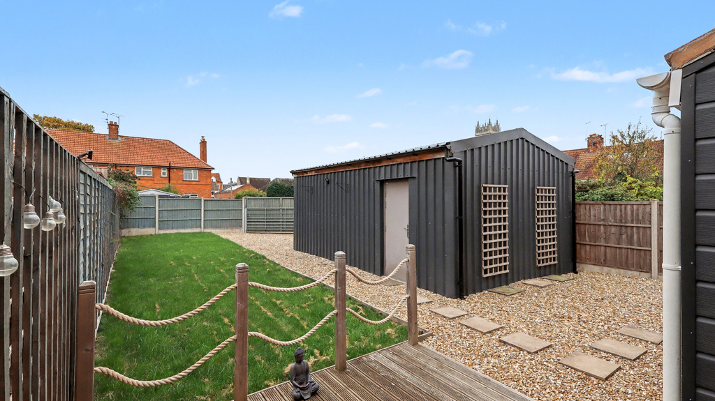 - The rear garden now has the addition of a detached garage and workshop, with automatic door. Lawned garden and off road parking