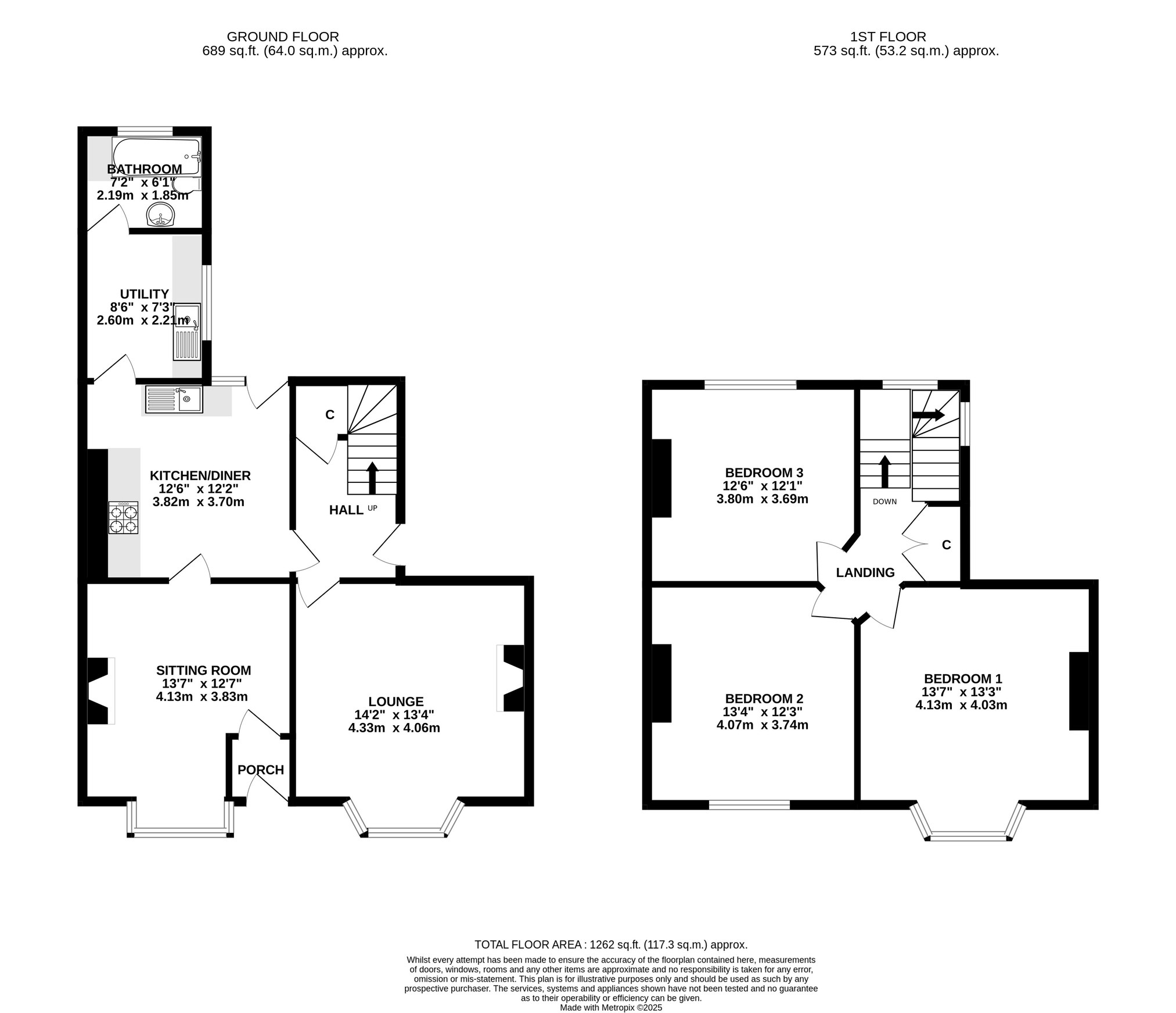 - Upstairs offers three generous double bedrooms, all accessed via a central landing with Bedroom 1 and Bedroom 2 at the front, and Bedroom 3 overlooking the rear garden.