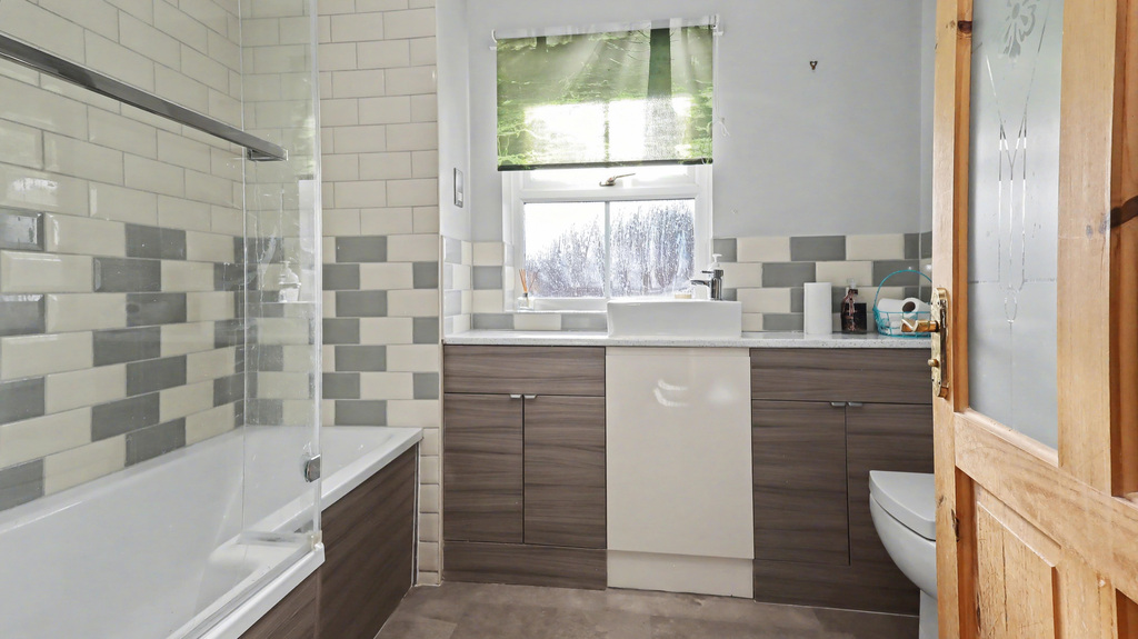 - Modernised family bathroom fitted with a panelled bath with shower over, wash hand basin and WC.