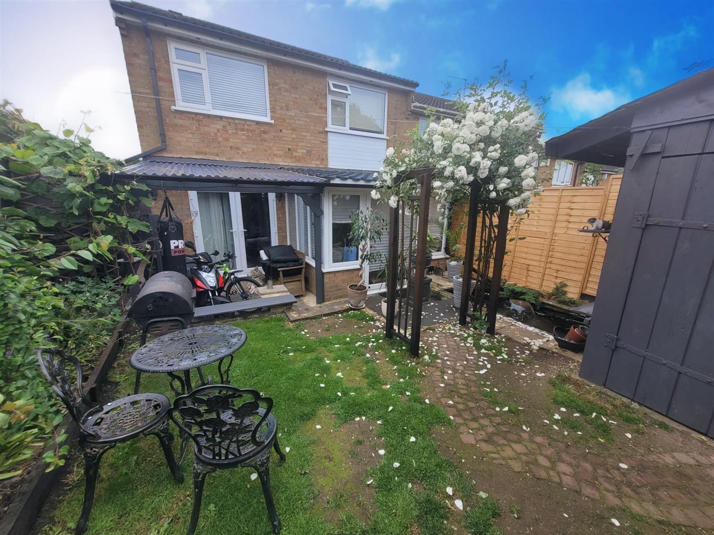 Externally, the rear garden includes a patio area and lawn, with the added benefit of a green space behind the property, providing a pleasant outlook and additional privacy. To the front, there is off-road parking and an garage with an electric door offering convenience.