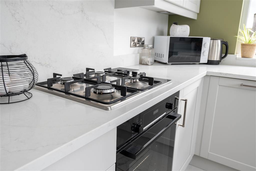 - Light gray shaker style kitchen