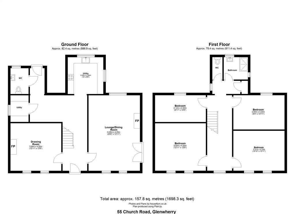 - Drawing room with cast-iron fireplace