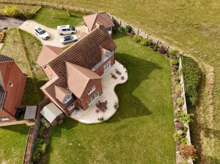 Outside Space: The rear garden is beautifully landscaped, with a large patio area ideal for outdoor dining, and a well-maintained lawn with shrub borders. The garden enjoys privacy and a peaceful outlook over surrounding fields. Additional features include outside tap, exterior lighting, and a large garden shed.