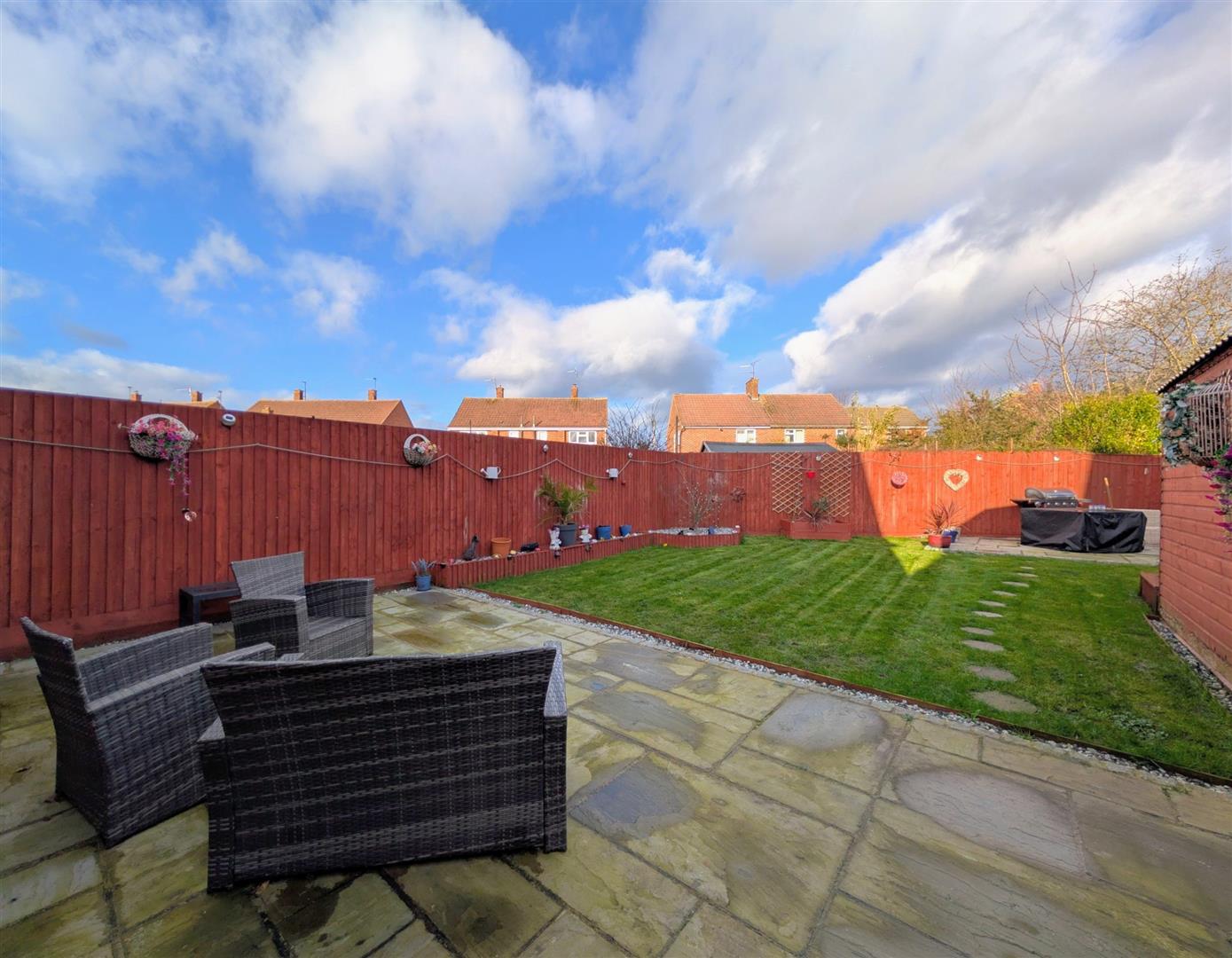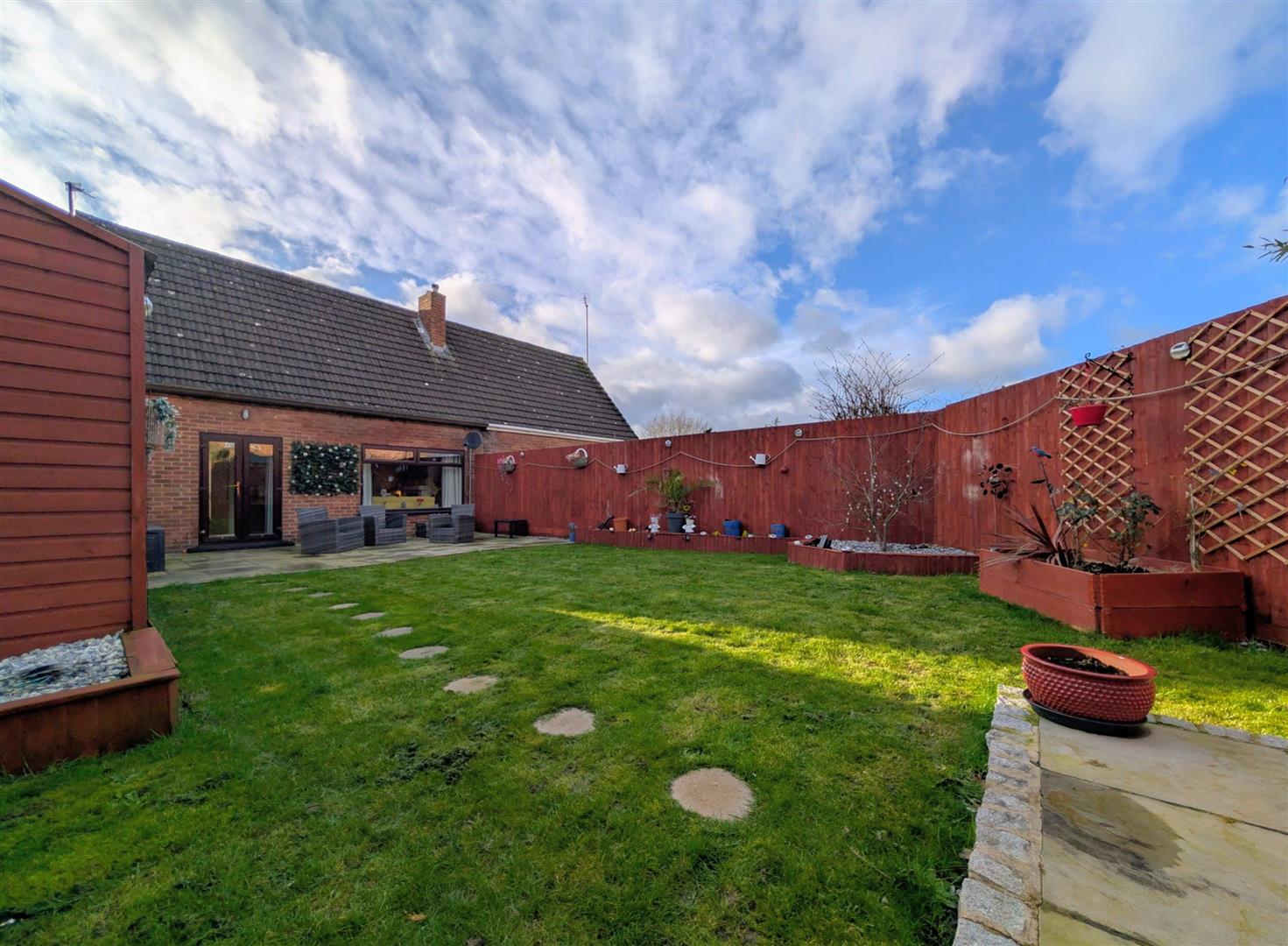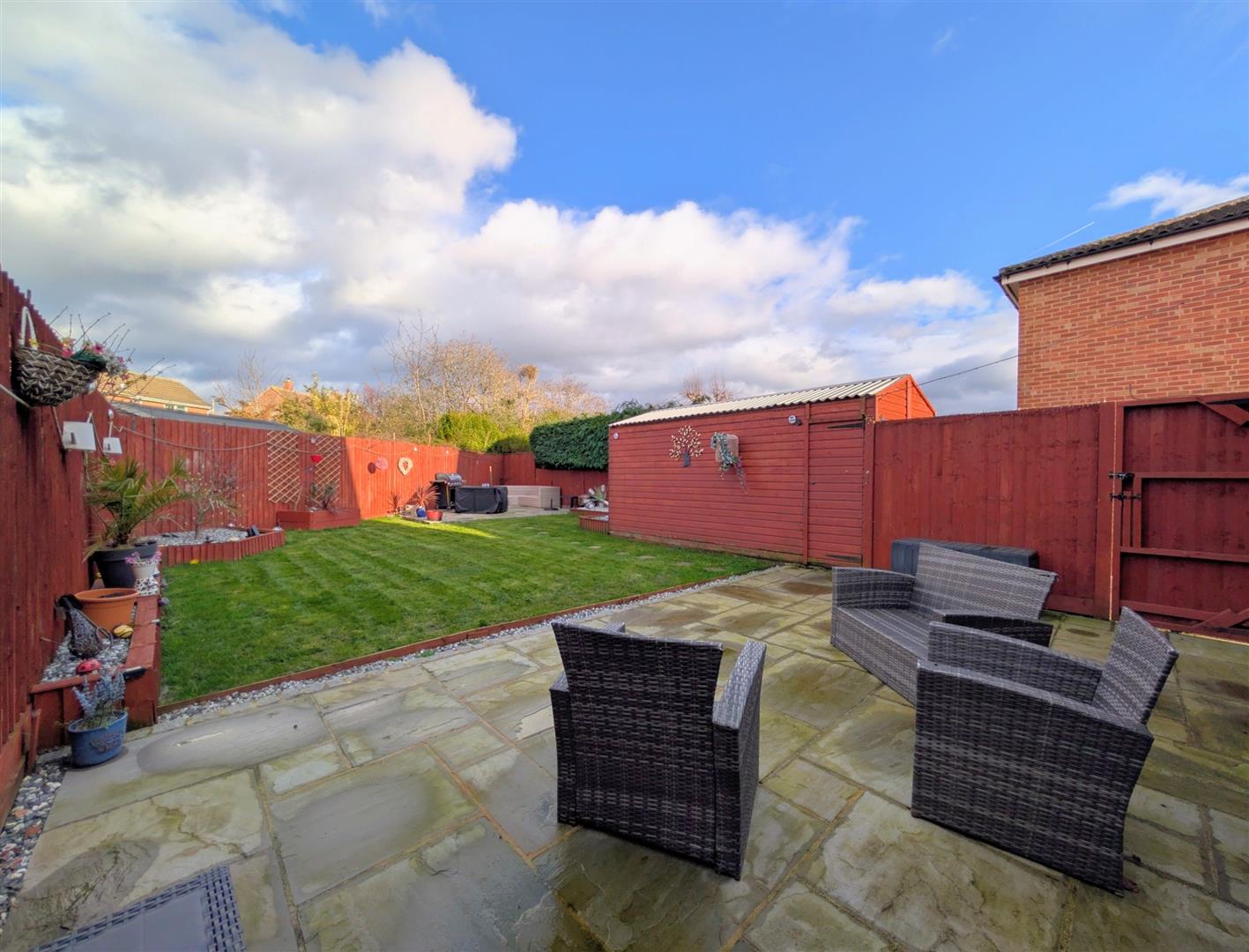 - Pleasant Enclosed Rear Garden With Paved Patios and Lawn
