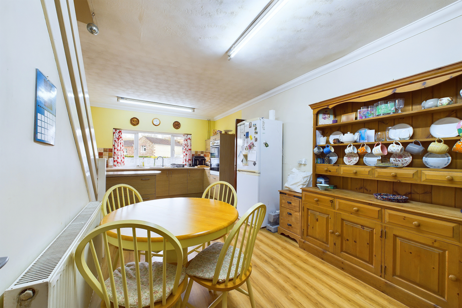 Kitchen/Diner - 20'11" x 12'2" (6.39 x 3.73 m) A bright and airy space featuring a large UPVC double-glazed window with charming views of the garden, plus an additional UPVC double-glazed window to the side. High coved ceilings and wood-effect flooring enhance the spacious feel.