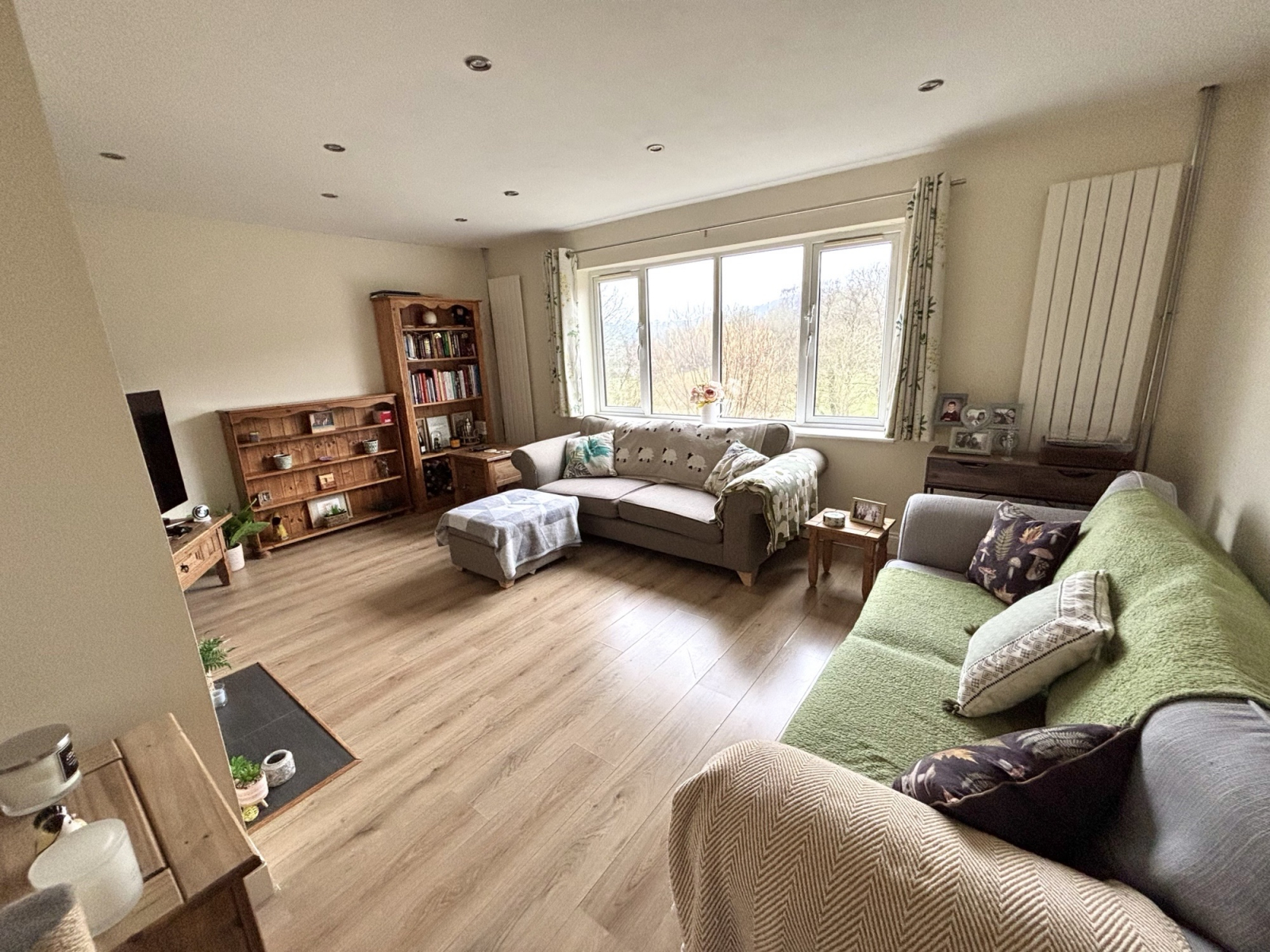Exceptionally large UPVC double-glazed window to the rear with fabulous elevated countryside views. Modernised throughout with spot lighting and laminate wood effect flooring. Feature fireplace with electric effect wood burner and tiled hearth. Great range of power points and two vertical radiators.