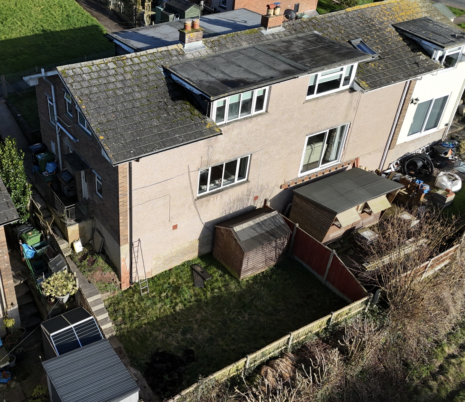Outside, the property benefits from a landscaped front garden, while the private rear garden offers a generous lawn, secure boundary fencing, and scenic views. Roadside parking is conveniently located nearby.