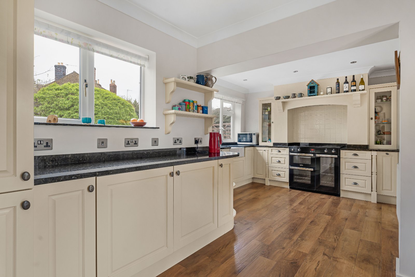 To the rear of the property, a generous family room offers further versatile reception space, ideal as a playroom, media room, or secondary sitting room. This flows seamlessly into a delightful garden room, which enjoys views over the rear garden and provides an ideal year-round seating area with a strong connection to the outside.