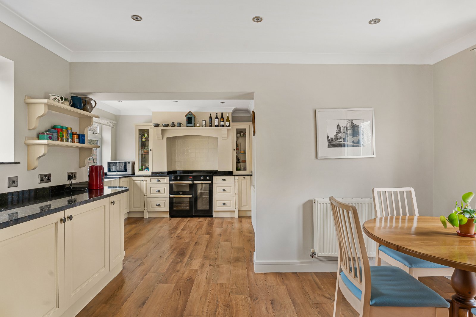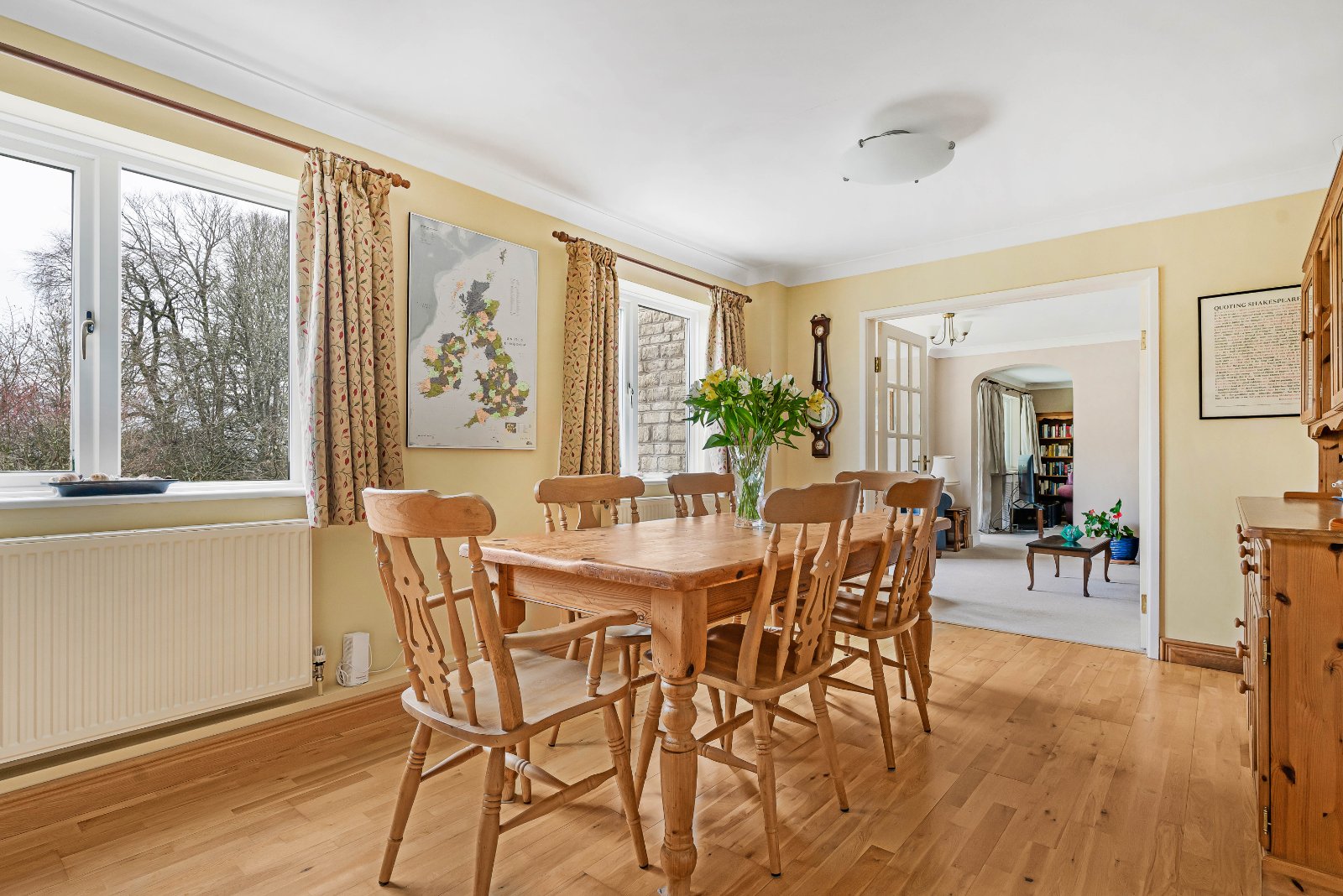 A separate dining room conveniently links to the spacious kitchen/breakfast room, which offers an excellent informal dining space. A useful utility room lies adjacent, providing additional storage and laundry facilities with external access. The oil-fired boiler is housed within this room.