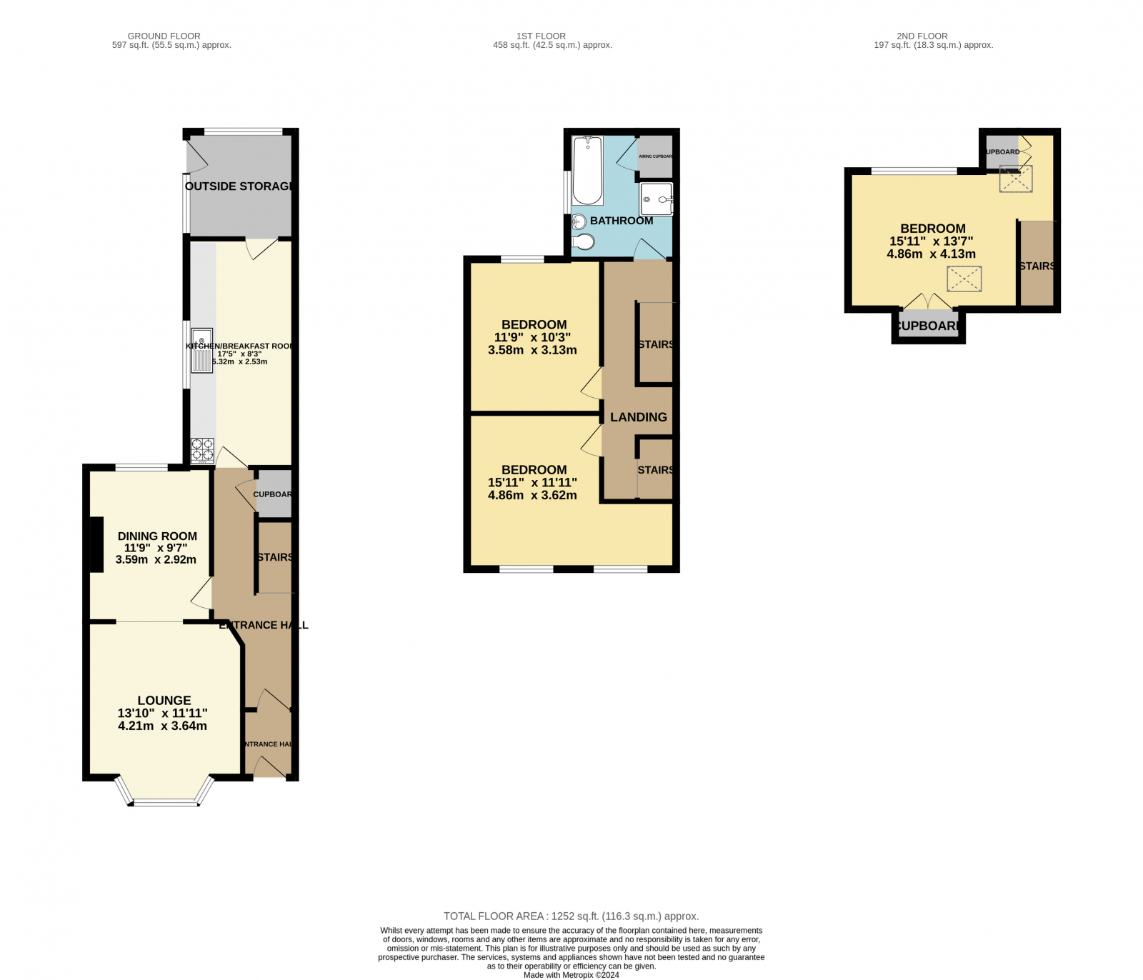 11' 9'' x 9' 9'' (3.58m x 2.97m)