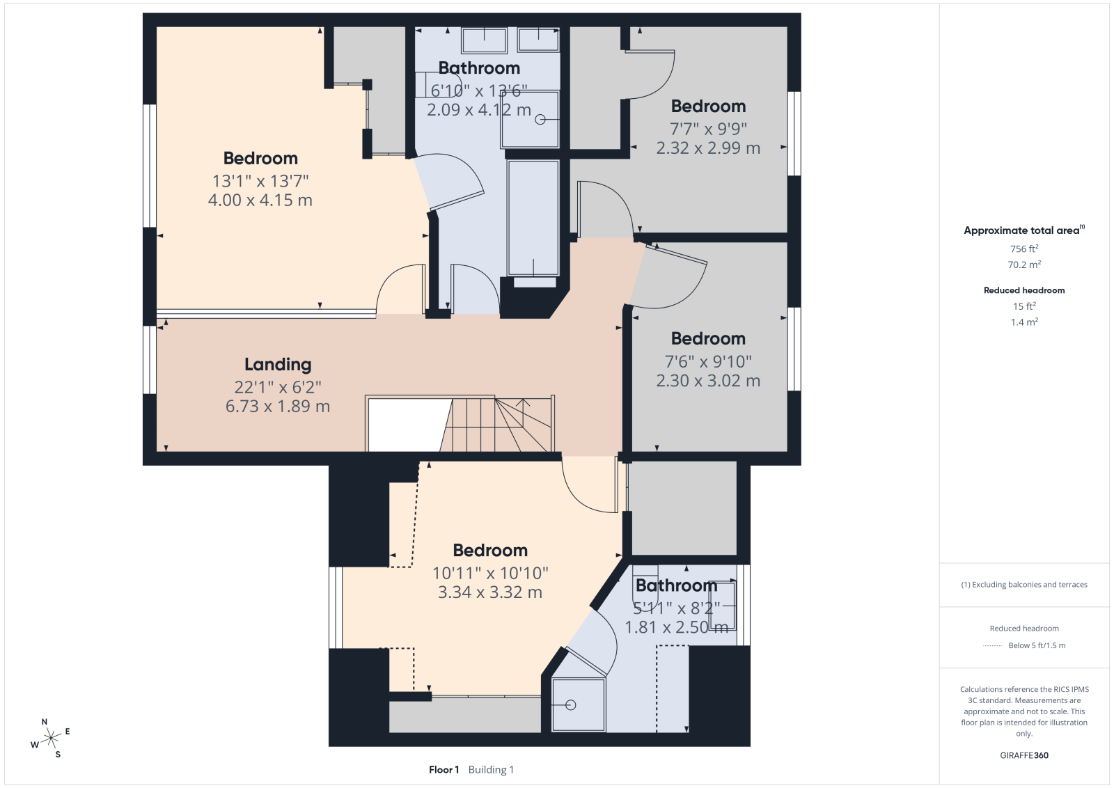 Family Bathroom 6'10'' x 13'6'' Boasting a luxurious spa-like feel, this impressive bathroom features a Velux window, ambient feature lighting, and exceptional tiling throughout. The white suite includes a low-level push-button WC, panel bath with mixer tap and shower attachment with glazed screen, and a separate step-in corner shower with power shower.