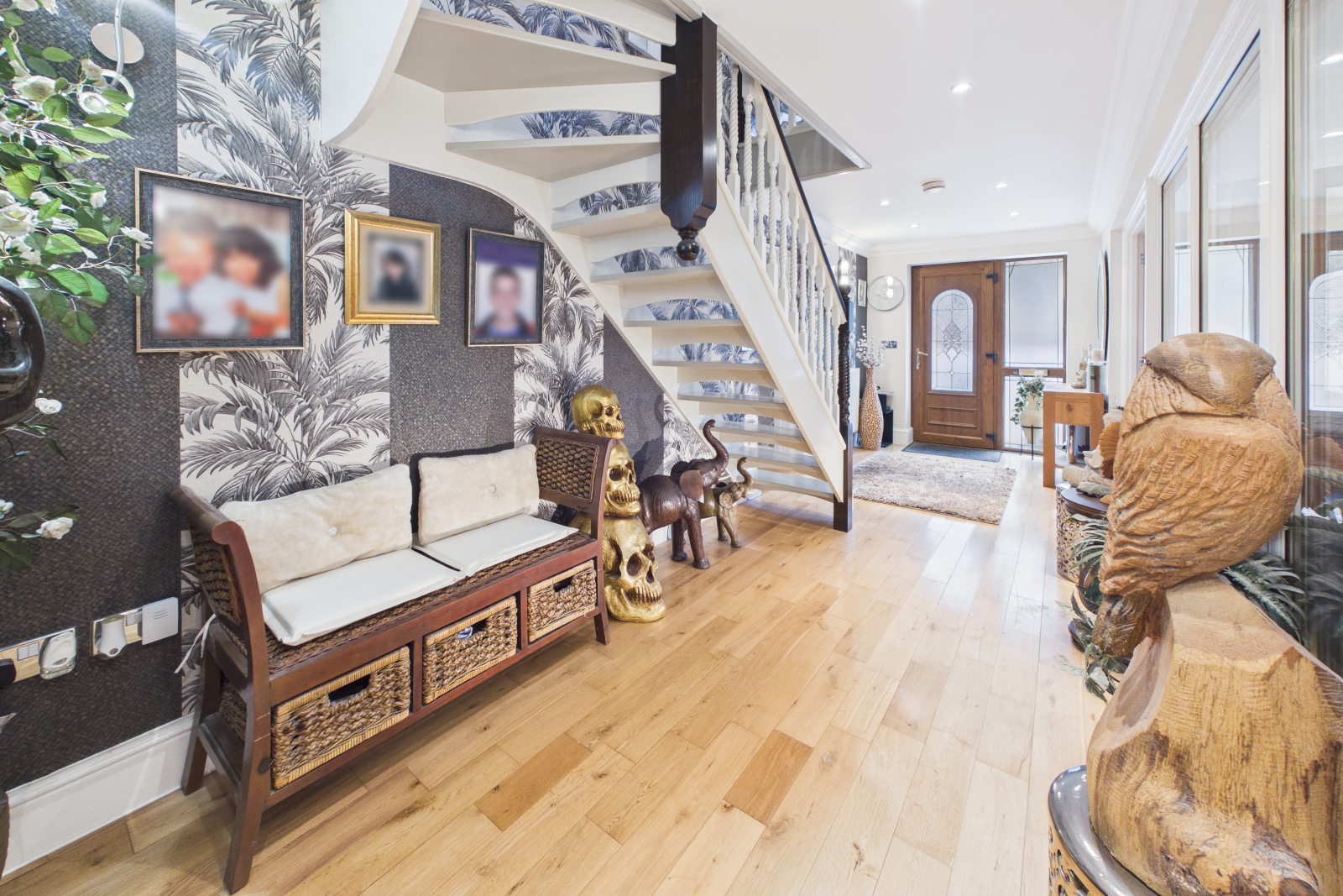 An immaculate four bedroom detached home, offered with no onward chain and enhanced by a separate one bedroom annexe, ideal for multi-generational living or income potential. Set in a sought-after location with breath taking Forest views, this exceptional property features off-road parking, beautifully landscaped gardens, and a pristine interior, combining space, versatility, and luxury in a truly special setting. Entrance Accessed via a stylish storm porch featuring inset lighting and an obscured glazed UPVC entrance door with side panel, flooding the reception hallway with natural light and setting an impressive first impression.