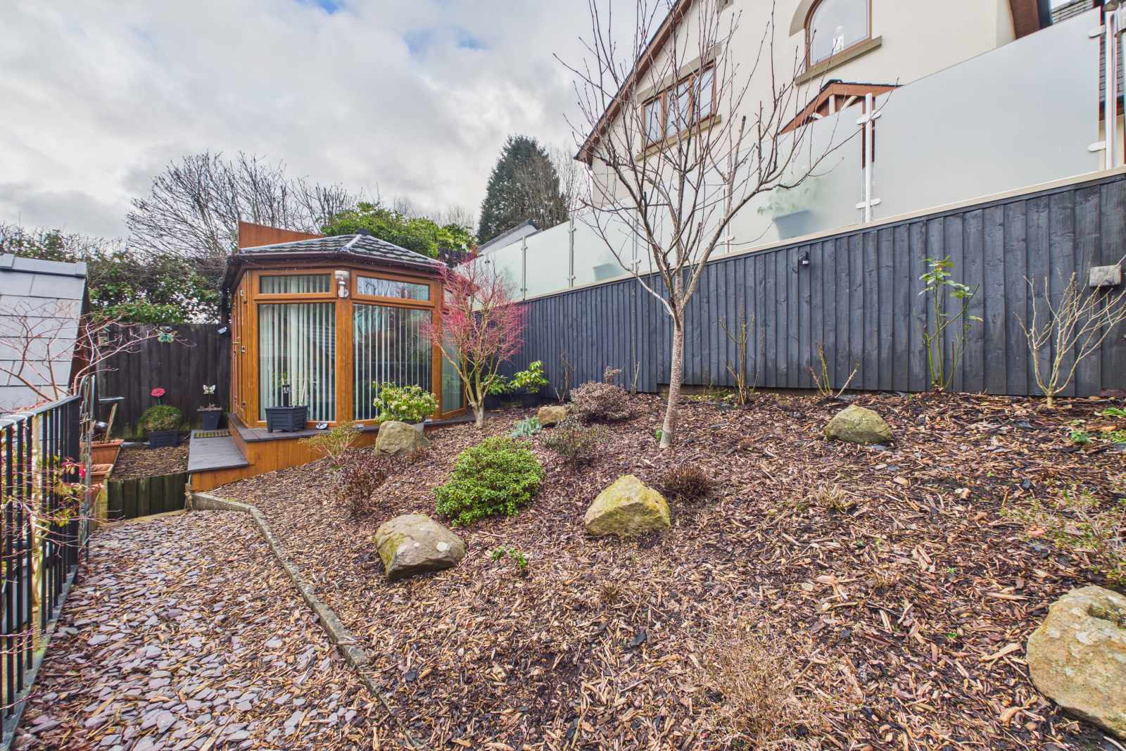 Further features enhance the sense of luxury and wellbeing, including a tranquil water feature, a summer gazebo, and a dedicated sauna room, transforming the garden into a true lifestyle space designed for relaxation and enjoyment. Subtle outdoor lighting and power throughout ensure the garden can be enjoyed comfortably from day into night.