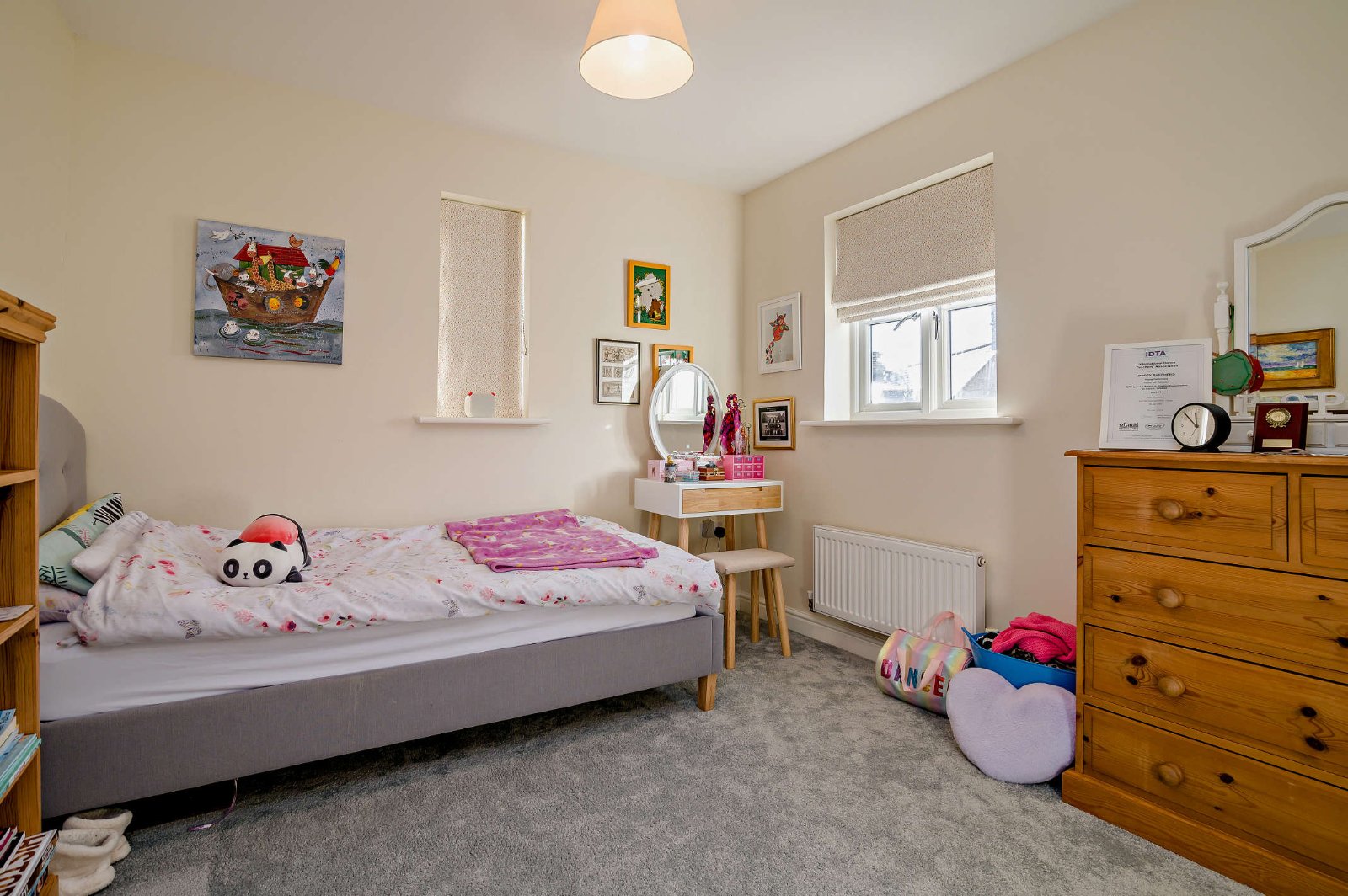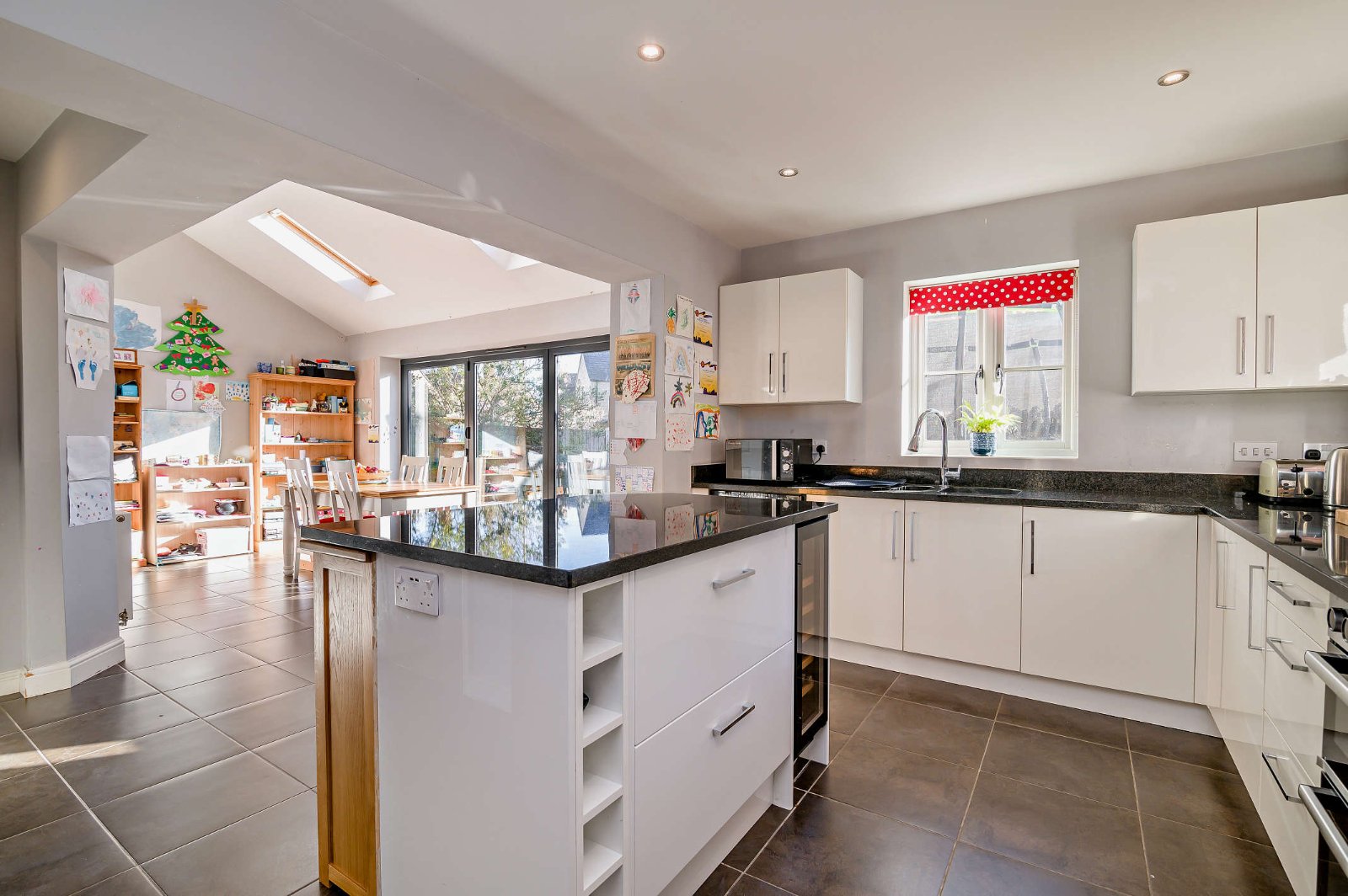Detached five-bedroom family home offering generous, versatile accommodation over three floors, featuring an open-plan kitchen/diner with bi-folding doors to the south-facing garden, complemented by ample parking. Set on a corner plot with a detached double garage.