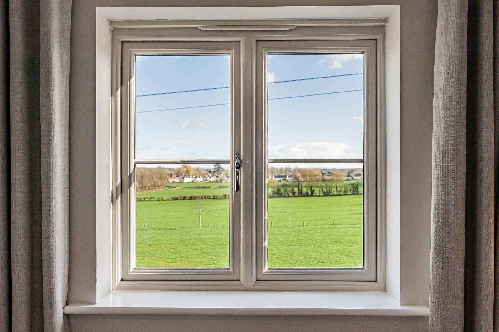 The ground floor offers a welcoming entrance hall with cloakroom, leading through to a generously proportioned sitting room that enjoys an abundance of natural light and pleasant countryside views. To the rear is a superb kitchen/dining room, thoughtfully designed and well-equipped, ideal for both everyday living and entertaining, with doors opening out to the garden. A utility room and additional cloakroom complete the ground floor.