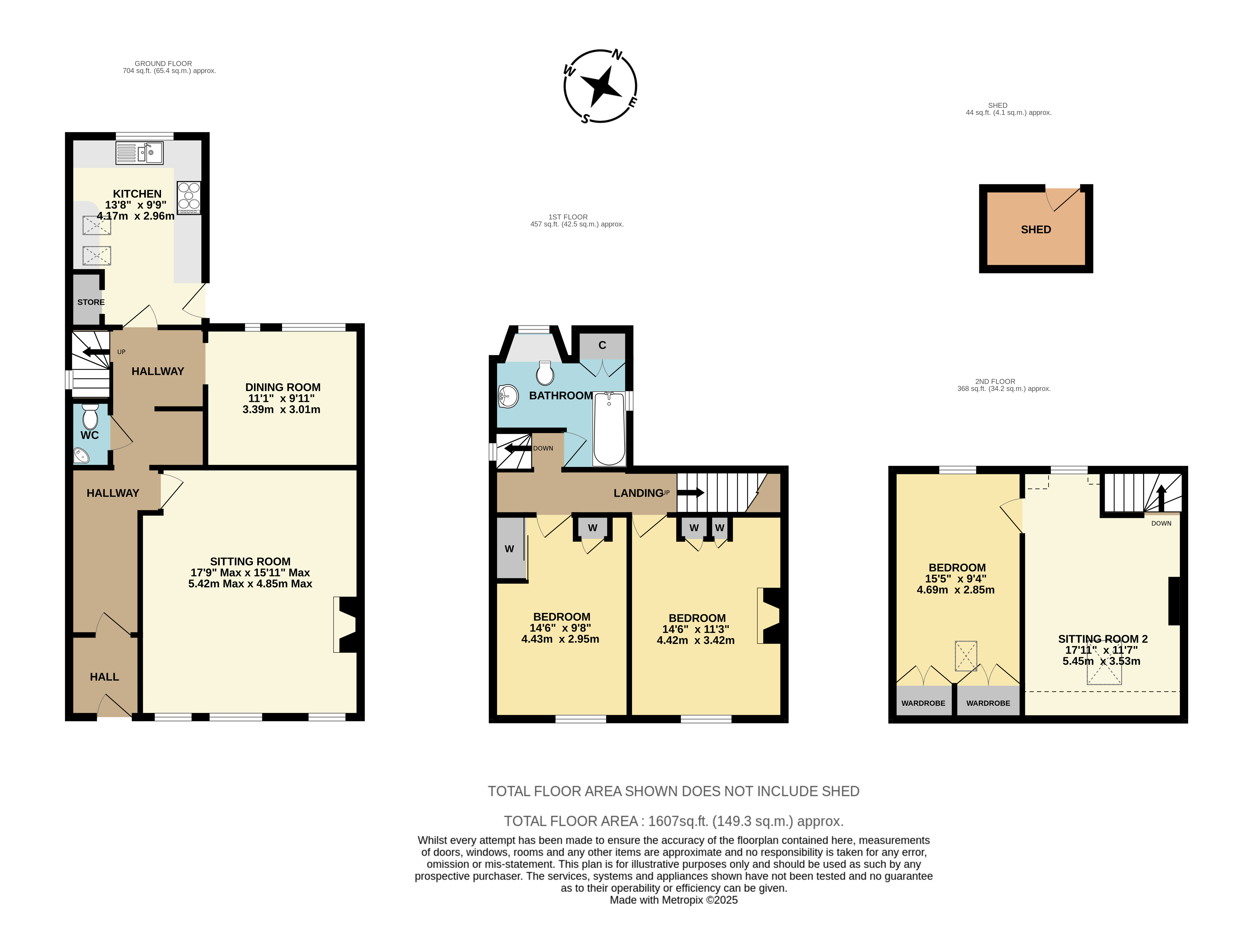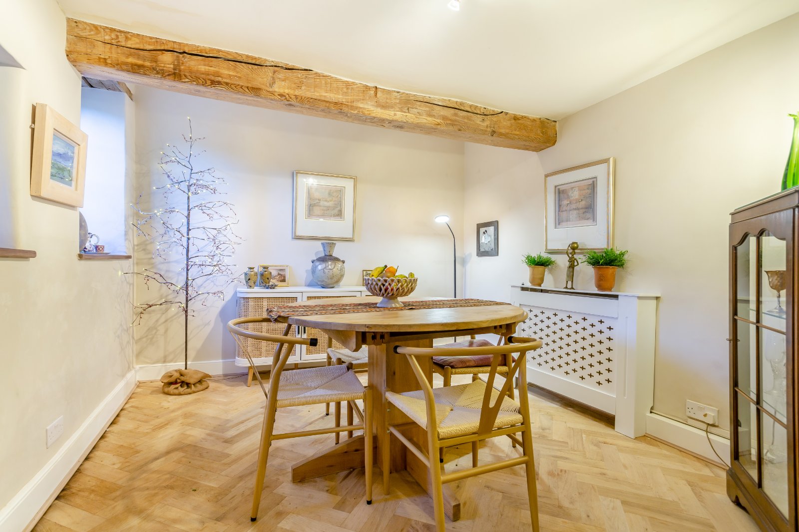 Arranged over three floors, the accommodation offers well-balanced and versatile living space. The ground floor comprises an inviting entrance hall with exposed floorboards, a cloakroom, a generous sitting room featuring attractive wooden flooring and a central open fire, a separate dining room with traditional wooden flooring ideal for entertaining, and a well-appointed kitchen to the rear, fitted with a range of wall and base units and offering direct access to the courtyard garden.