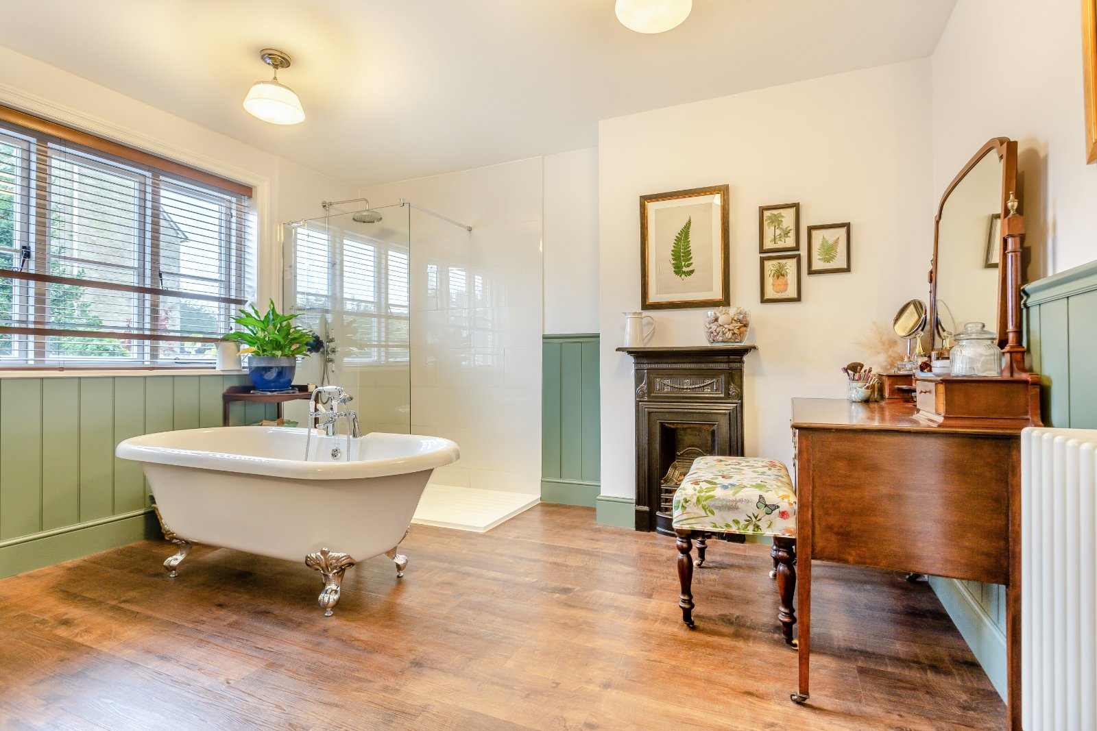 The superb bathroom on the middle floor is a particular highlight, featuring a luxurious roll-top bath, walk-in shower, and a dressing area, providing a perfect blend of comfort and style.
