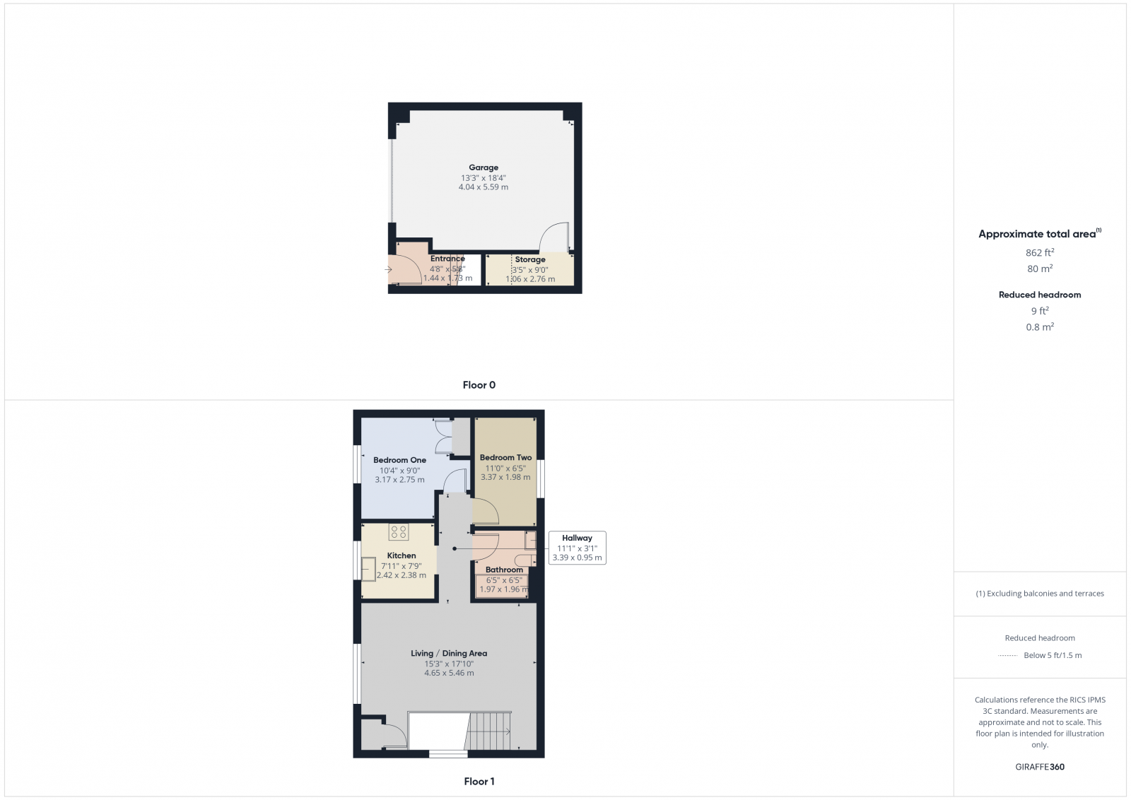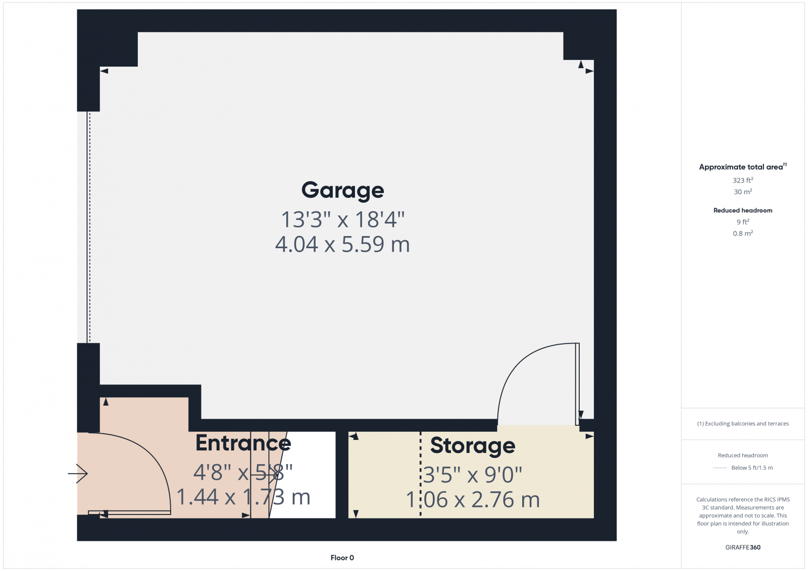 Up-and-over door, power and lighting, additional under-stairs storage to side.